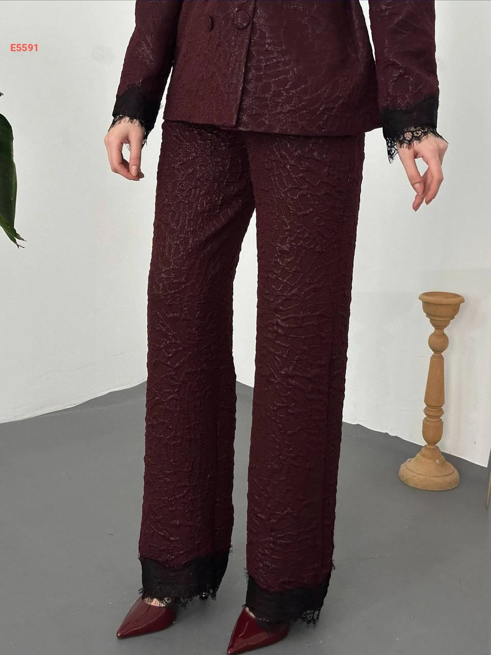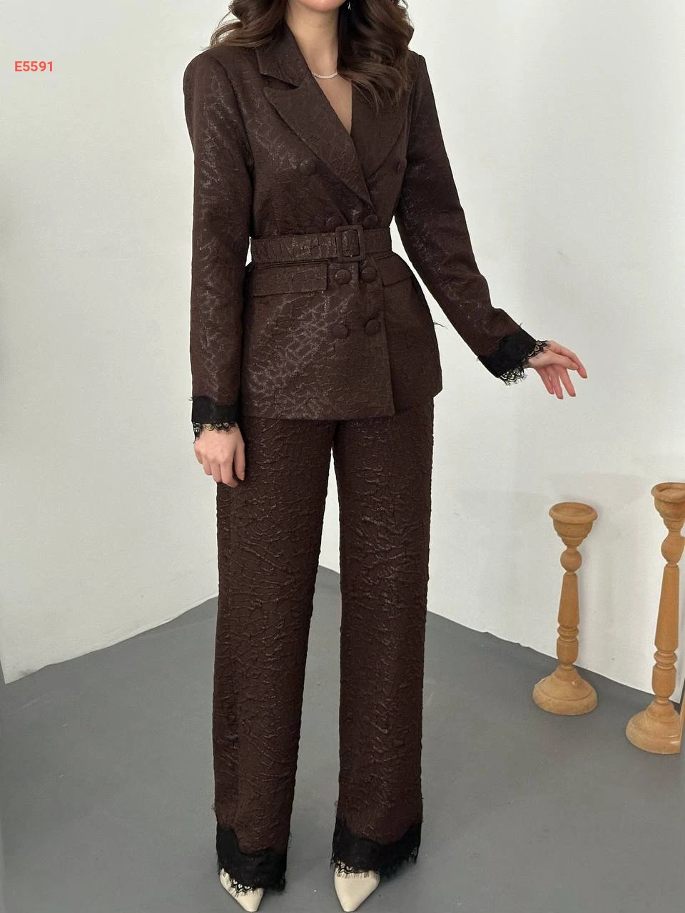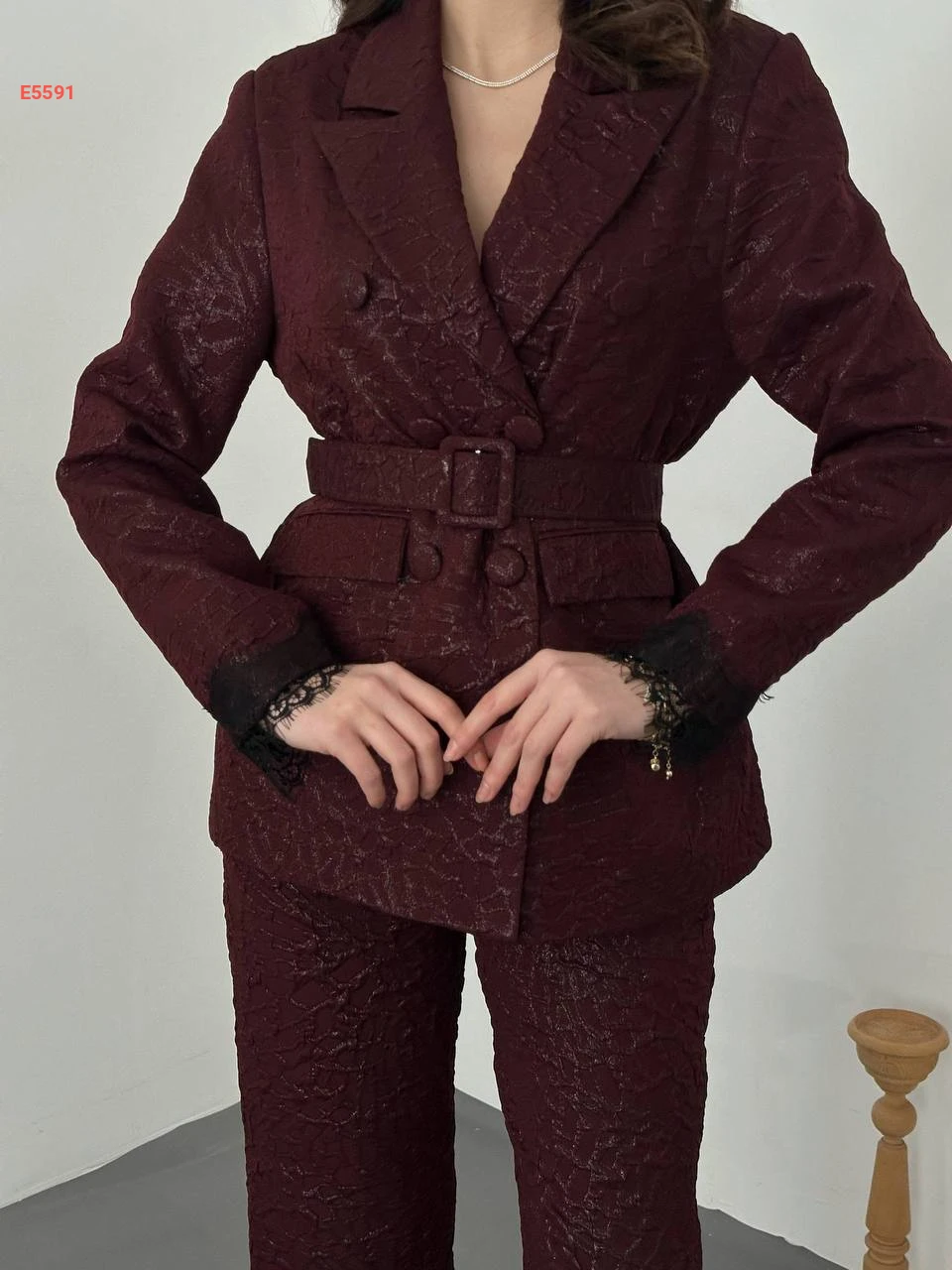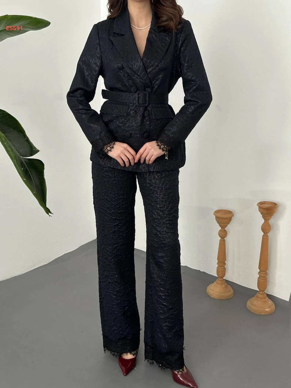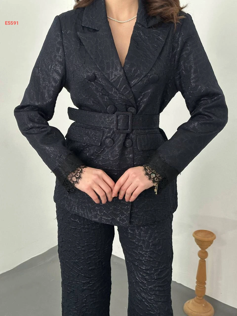 طقم بنطال وبليزر بدانتيل عالكم