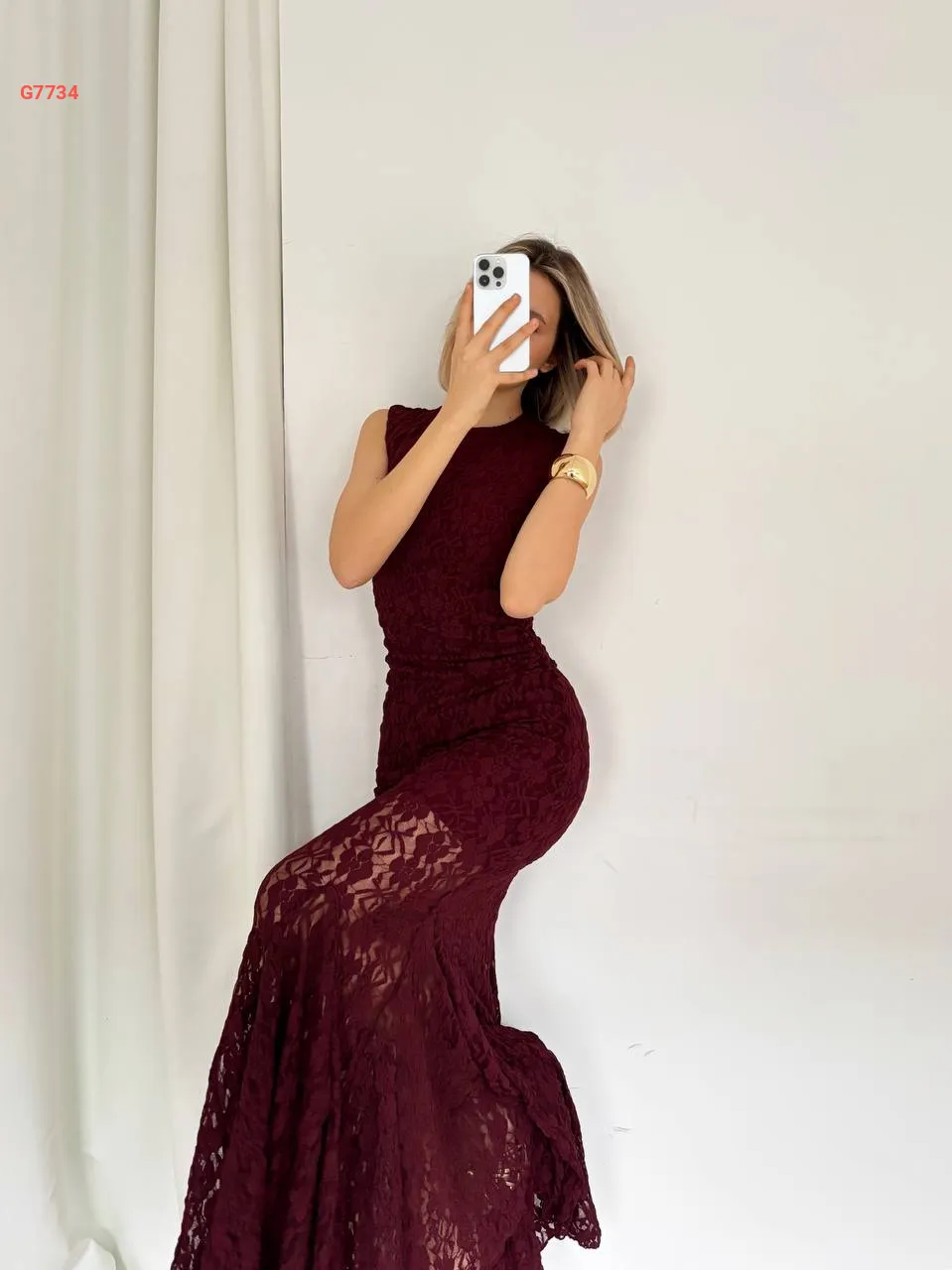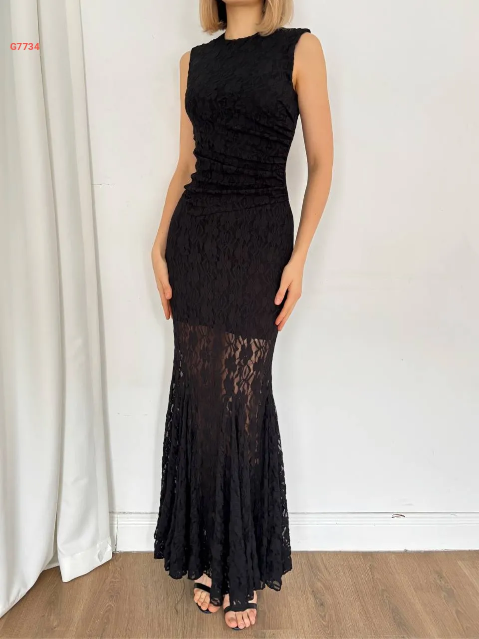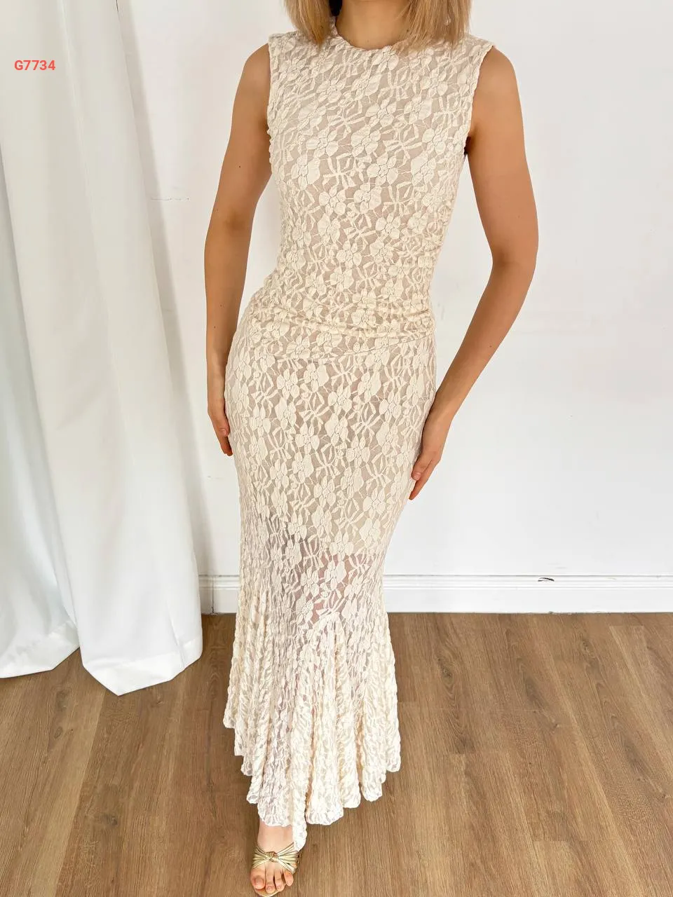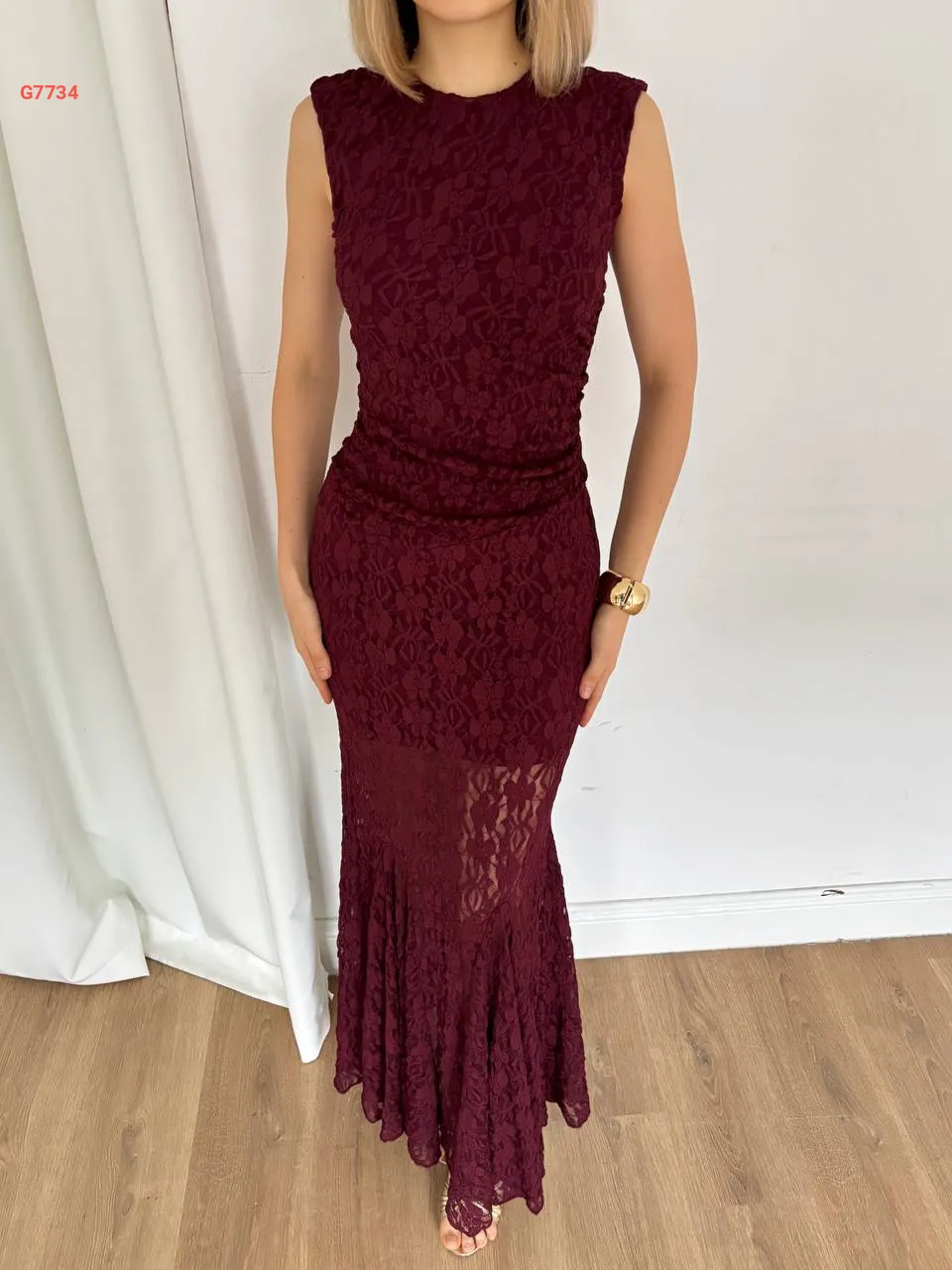 فستان طويل دانتيل حفر مجمع