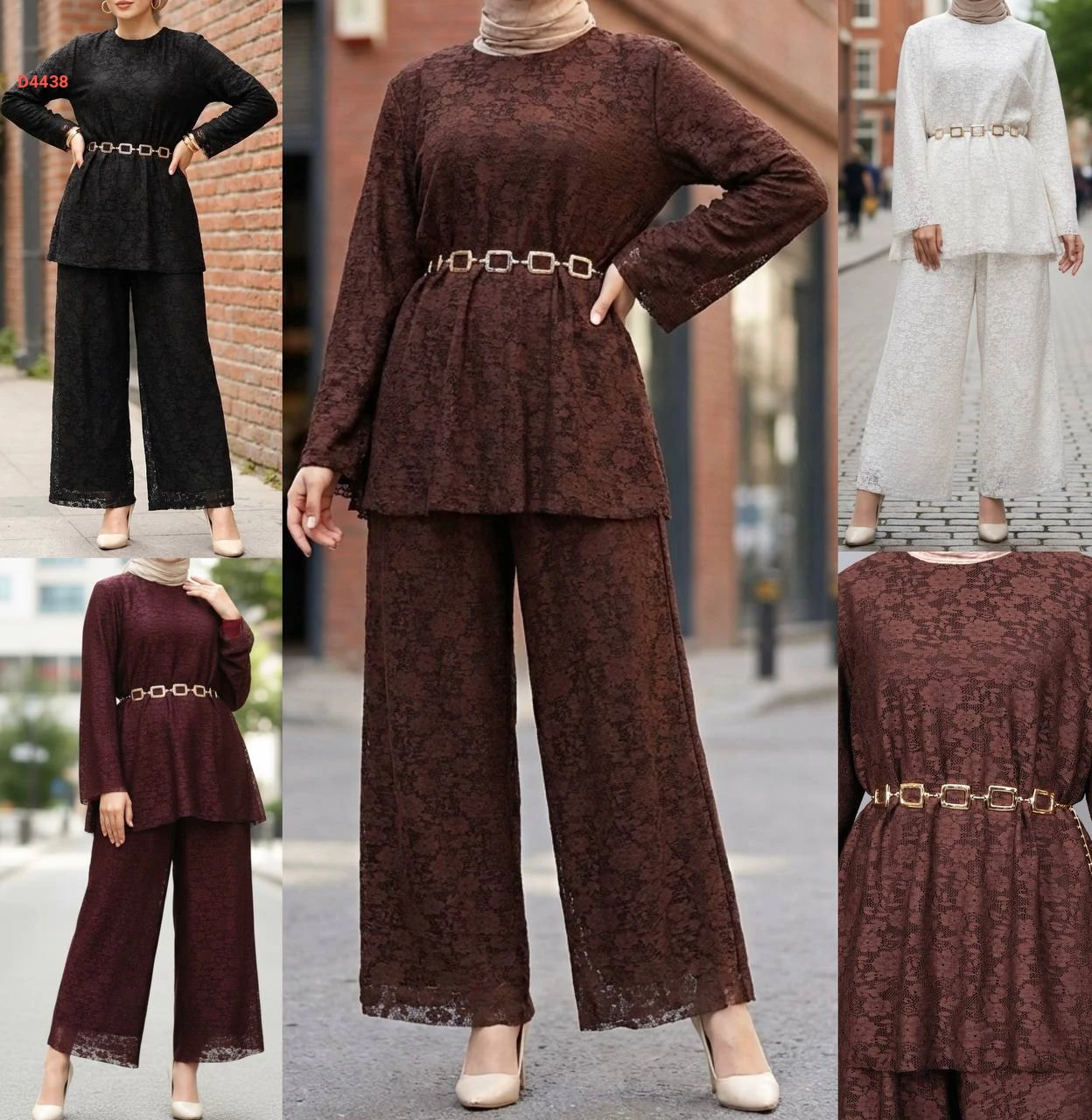 طقم بنطال دانتيل مع تونيك