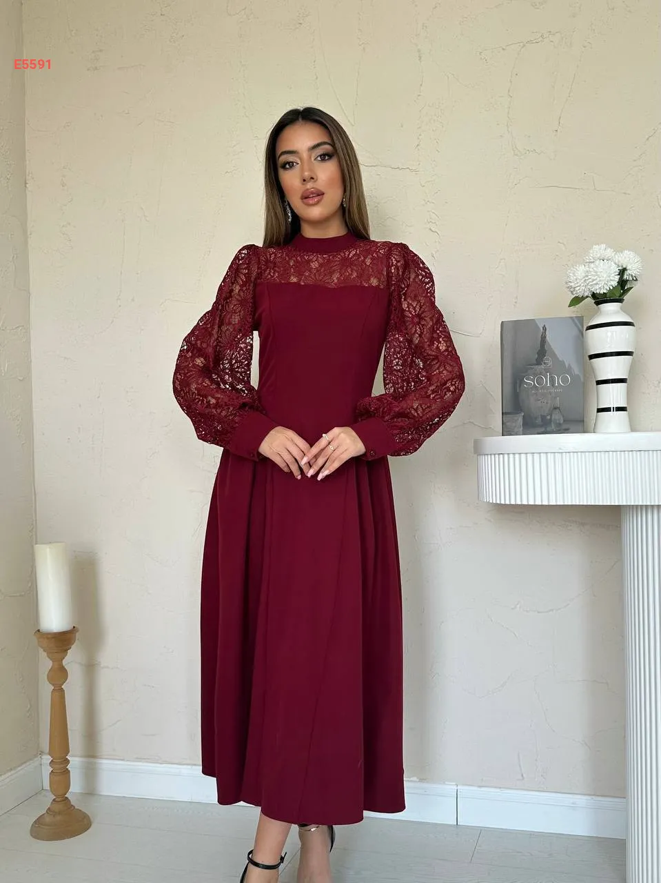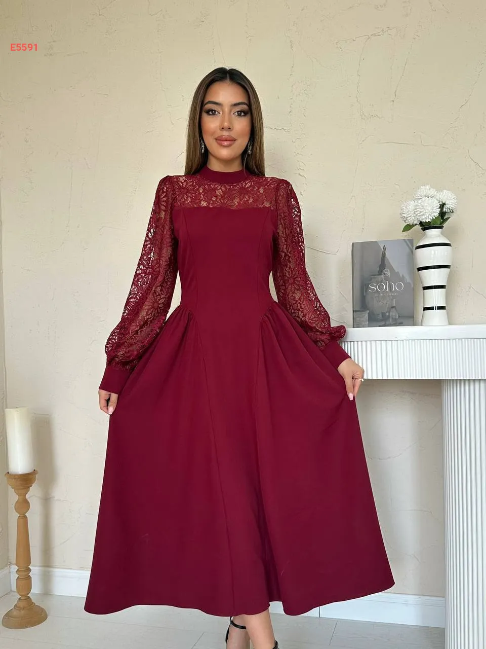 فستان طويل بأكمام دانتيل