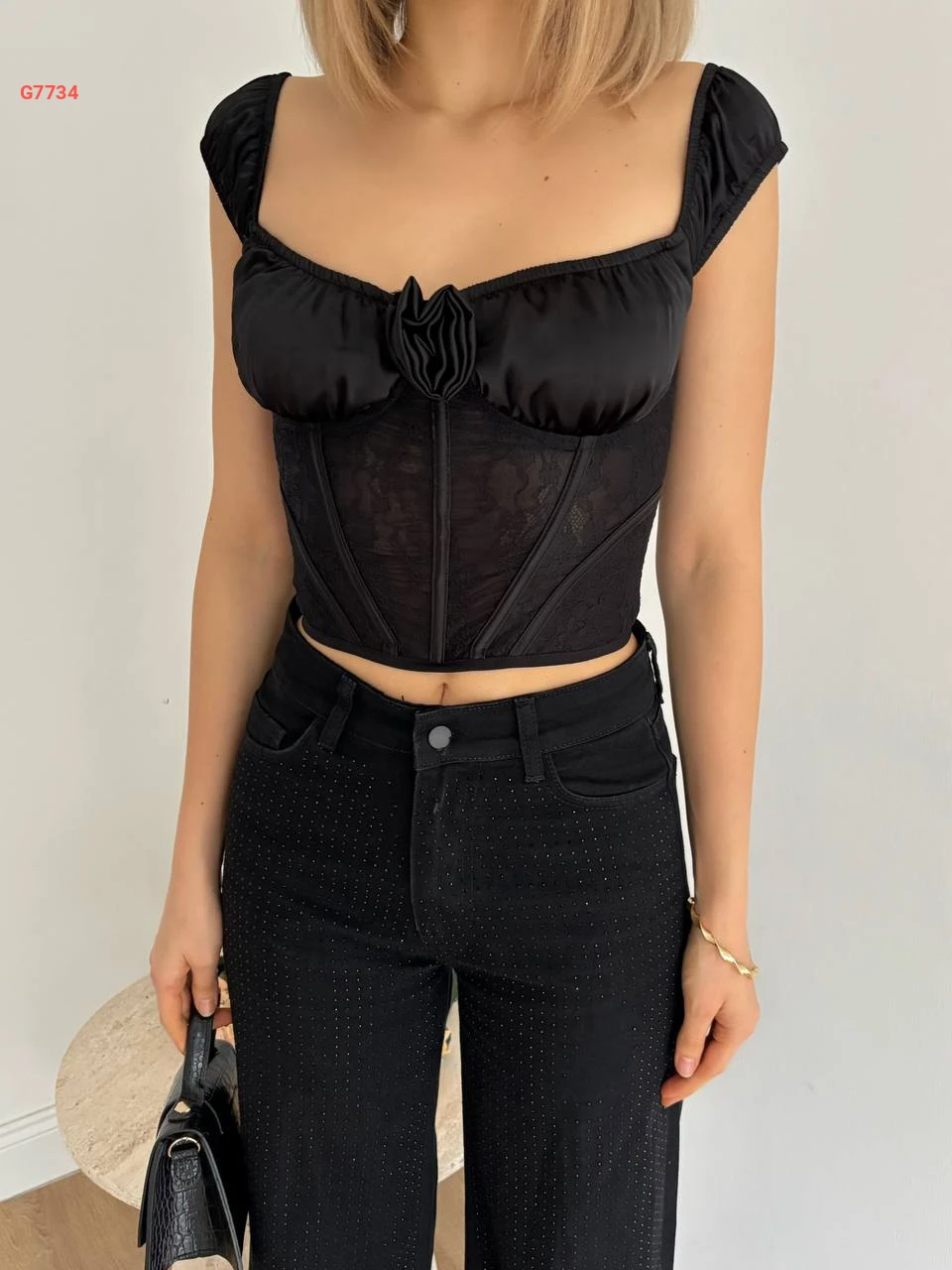 بلوزة توب دانتيل ببروش ورد