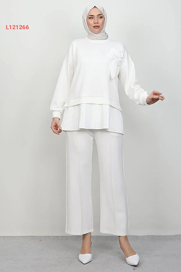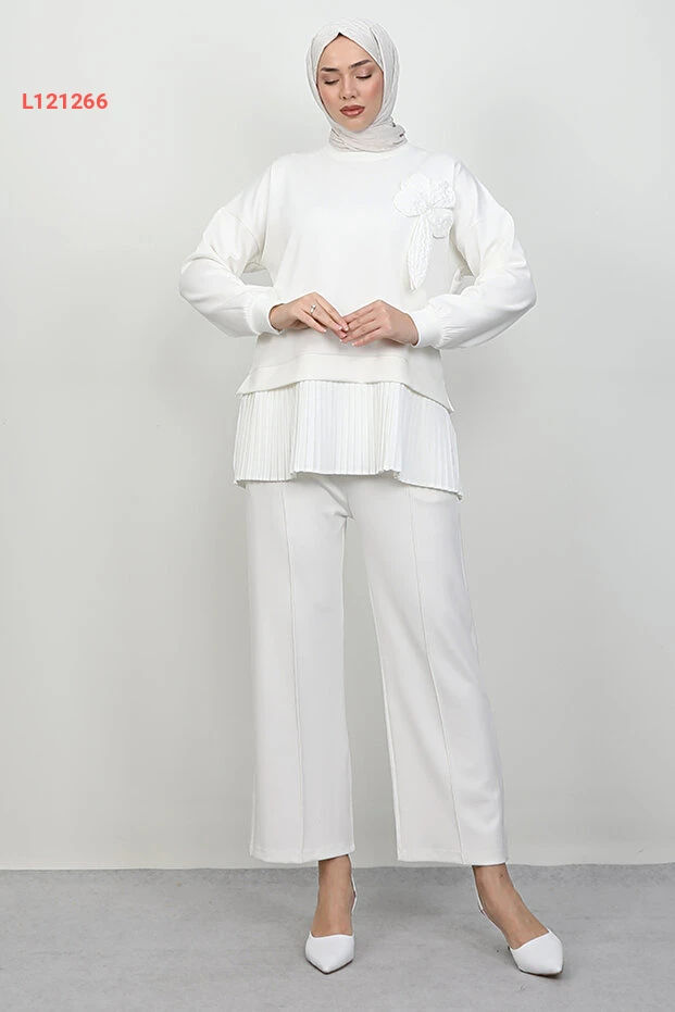 استمتع بالأناقة والراحة مع طقم "Glonya Sandy" الأبيض من Lamia Giyim. يتميز هذا الطقم بتصميمه العصري ونسيجه العالي الجودة، مما يجعله مثاليًا للمناسبات اليومية أو الفاخرة. أضف لمسة من التألق إلى خزانة ملابسك مع هذا الاختيار المثالي الذي يجمع بين الراحة والأناقة.