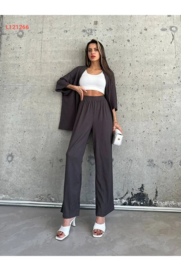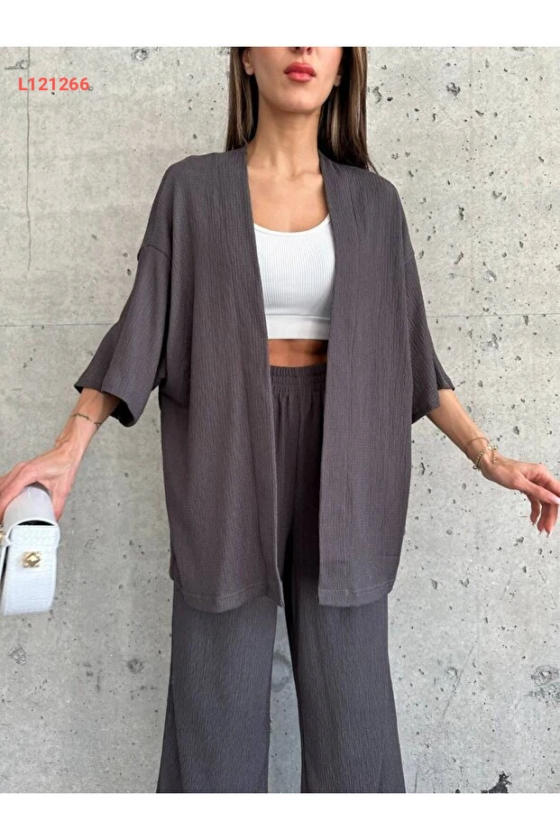 استمتع بأناقة لا تُضاهى مع طقم الكيمونو المجعد من LAMİFUSTORE. يتميز بتصميمه العصري والمريح الذي يمنحك إطلالة أنثوية رائعة، بالإضافة إلى قماش خفيف يتناسب مع جميع الأوقات. ارتدي هذا الطقم لمظهر يجمع بين الأناقة والراحة في كل مناسبة.