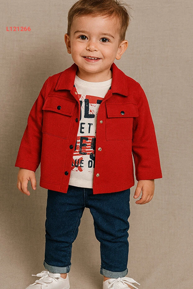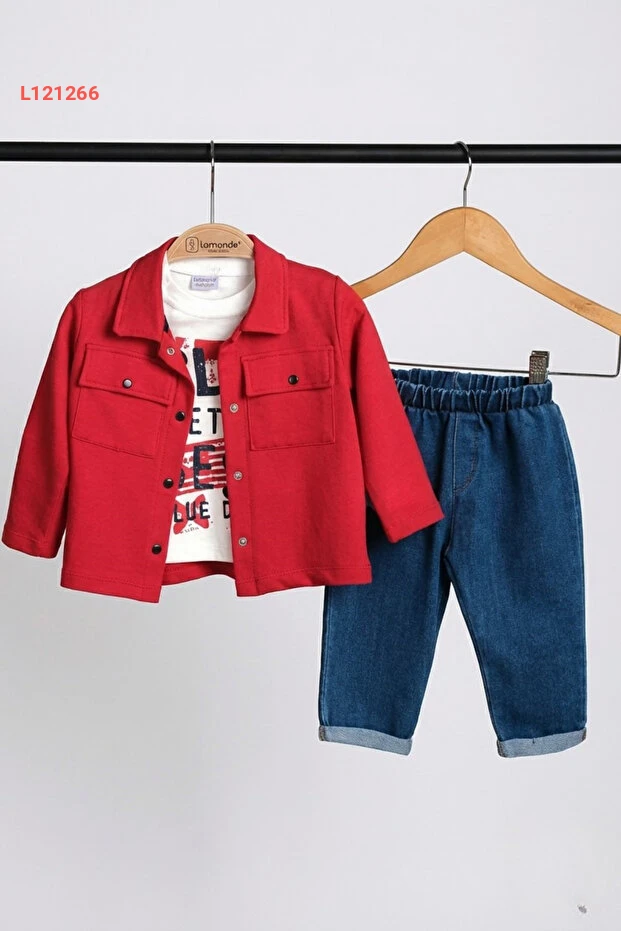 طقم لاموند ثلاثة قطع: سترة، بنطال جينز، وكنزة قطنية للأعمار 9-12-18-24 شهر