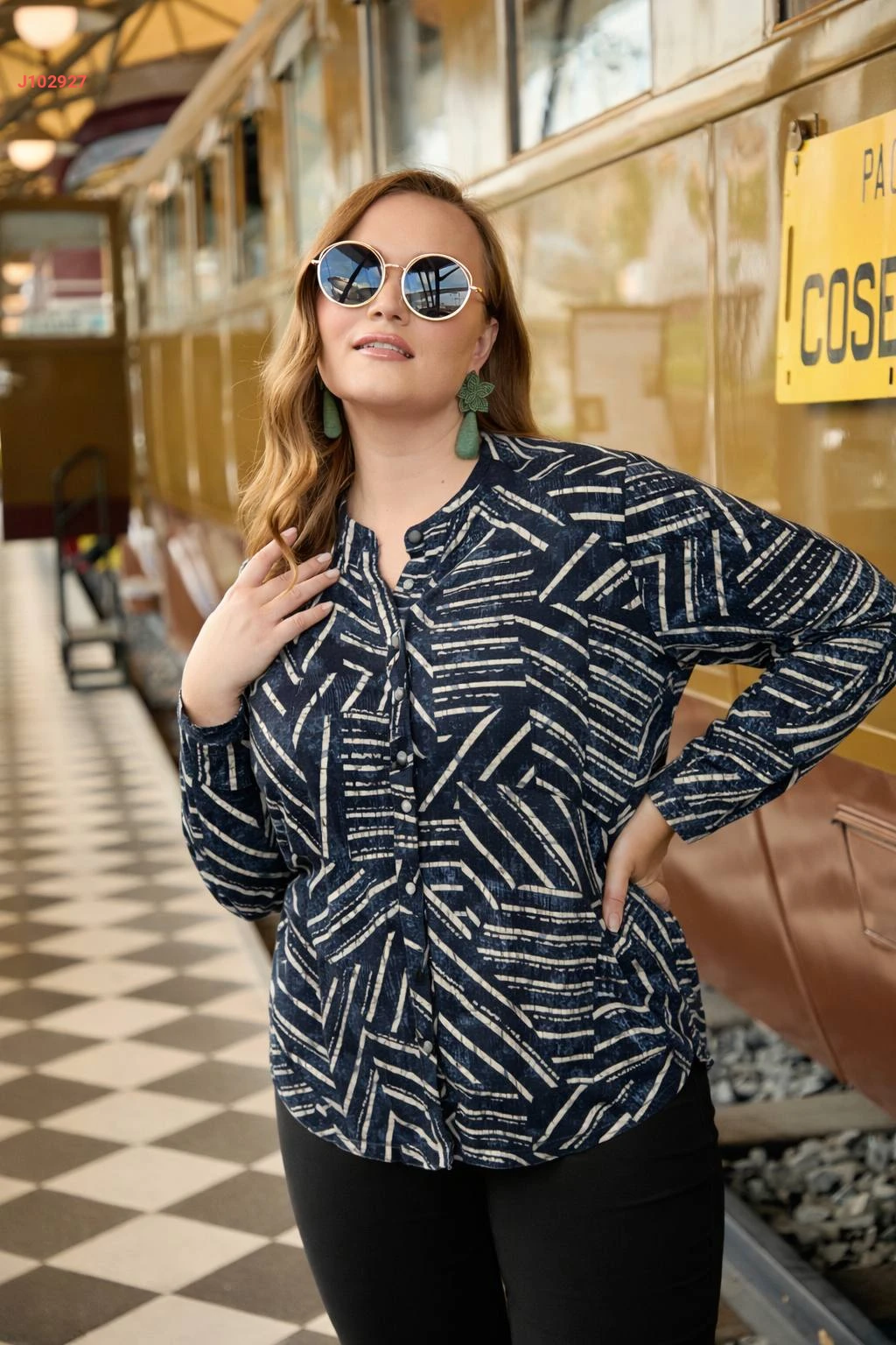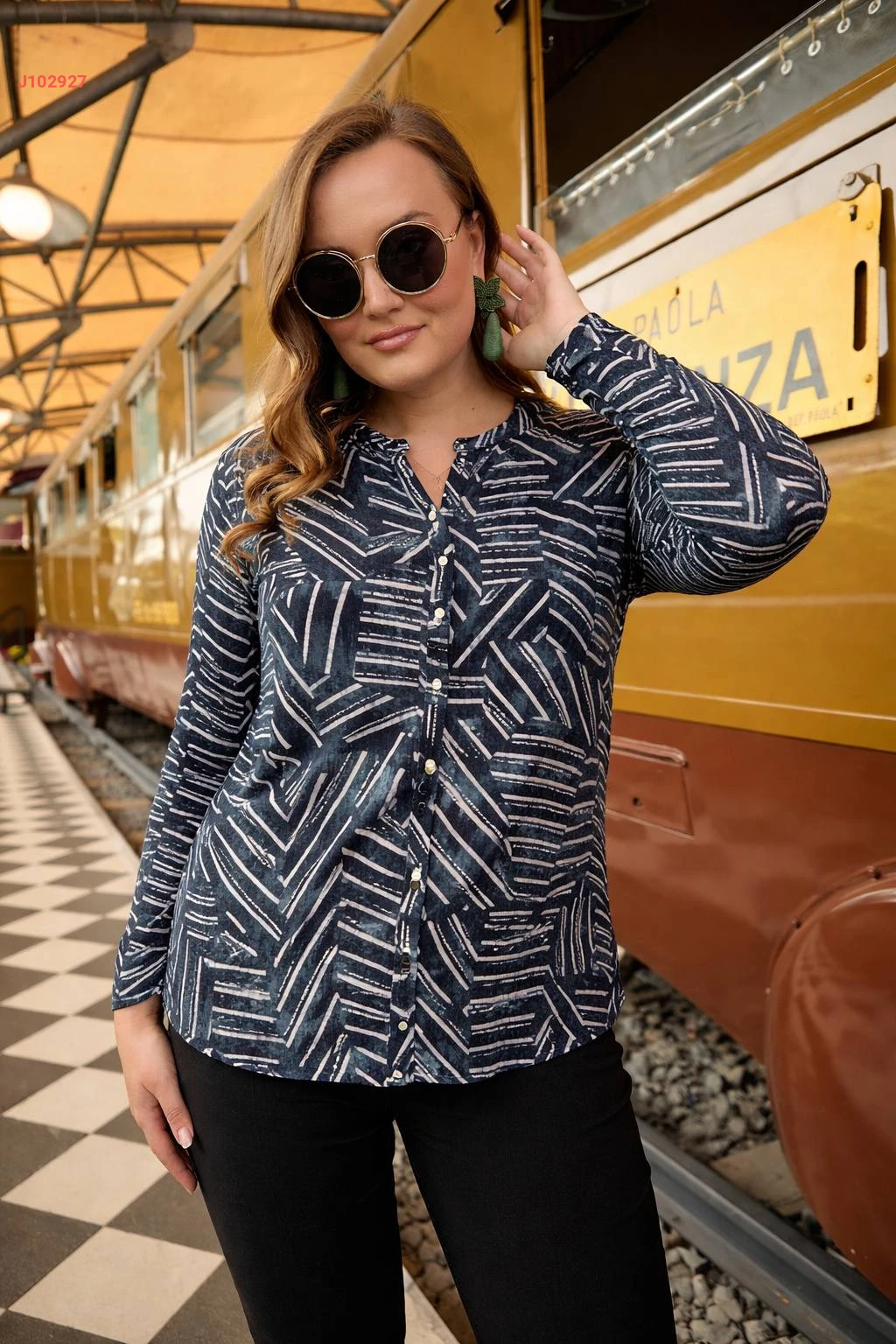 قميص قياس كبير منقوش