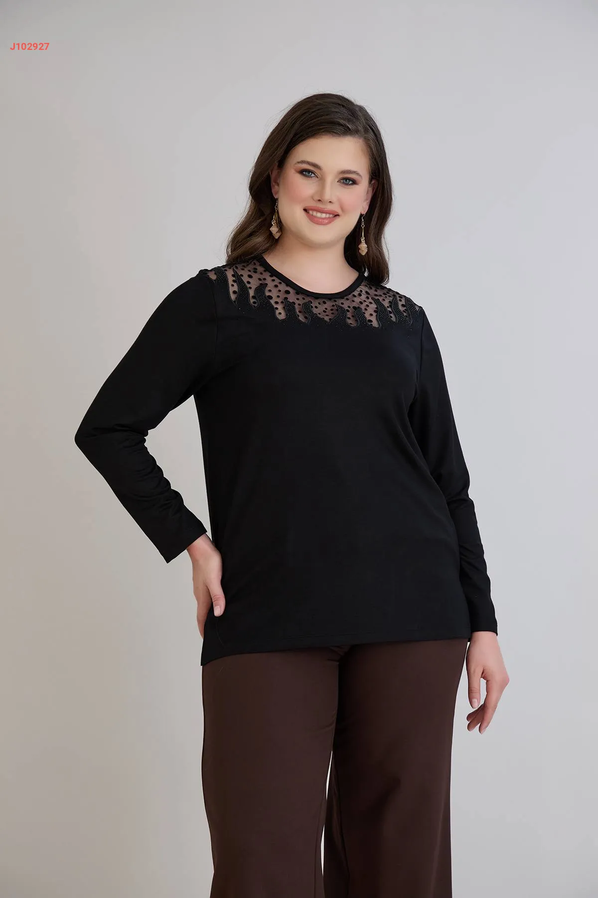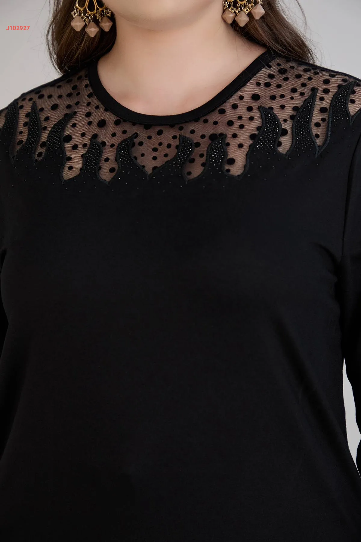 بلوزة قياس كبير بتفاصيل تول