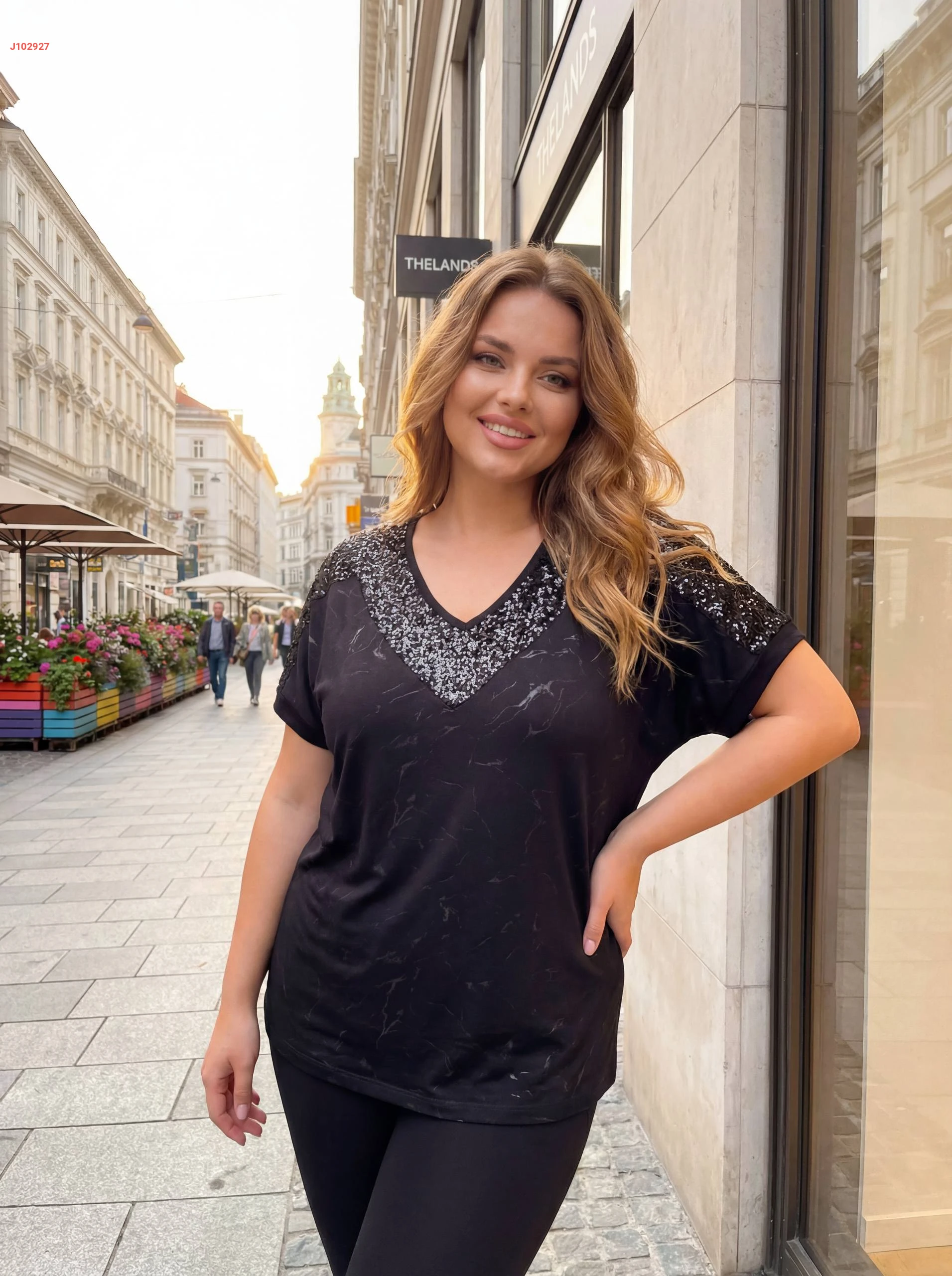 تيشرت قياس كبير مطرزة بالترتر