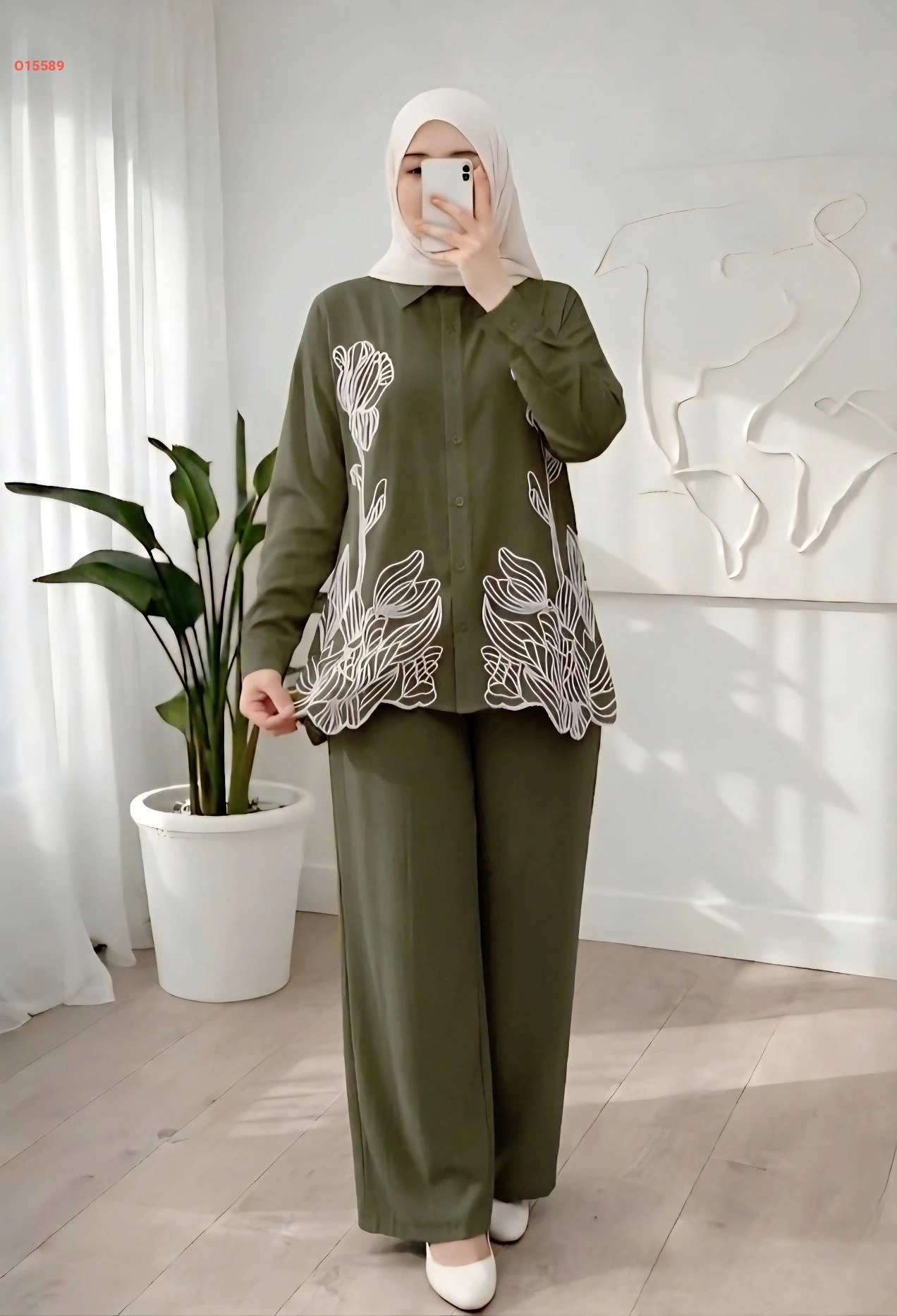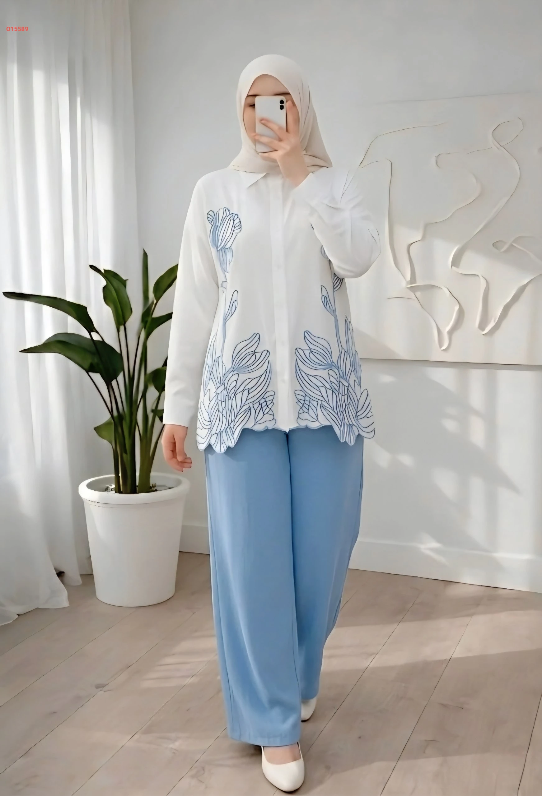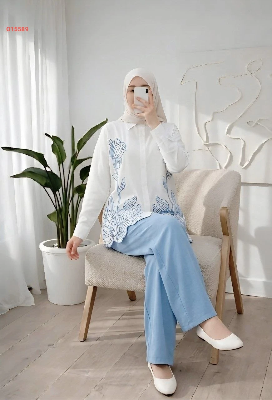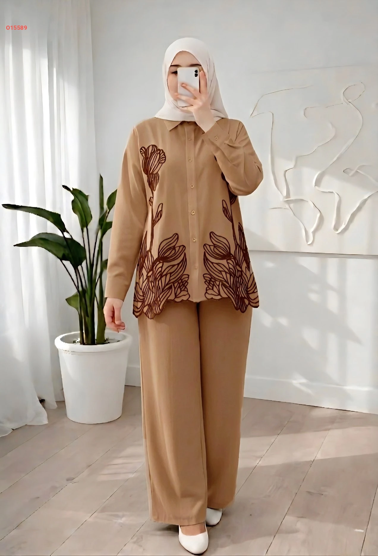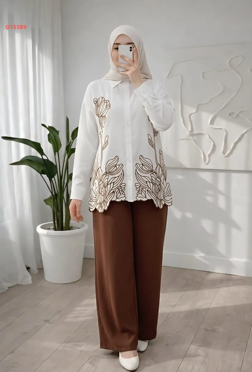 طقم بنطال وقميص تطريز ليزر