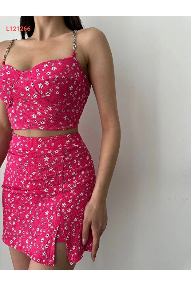 استمتعي بأناقتك مع طقم laughs KADIN المكوّن من تنورة شورت مزينة بنمط الأزهار مع فتحة جانبية جذابة، وبلوزة كروب أنيقة تضيف لمسة عصرية لطلتك. هذا الطقم المثالي يجمع بين الراحة والأناقة، مما يجعله خيارًا رائعًا لمناسباتك اليومية أو الخروجات المسائية. احصلي على إطلالة مميزة تلفت الأنظار!