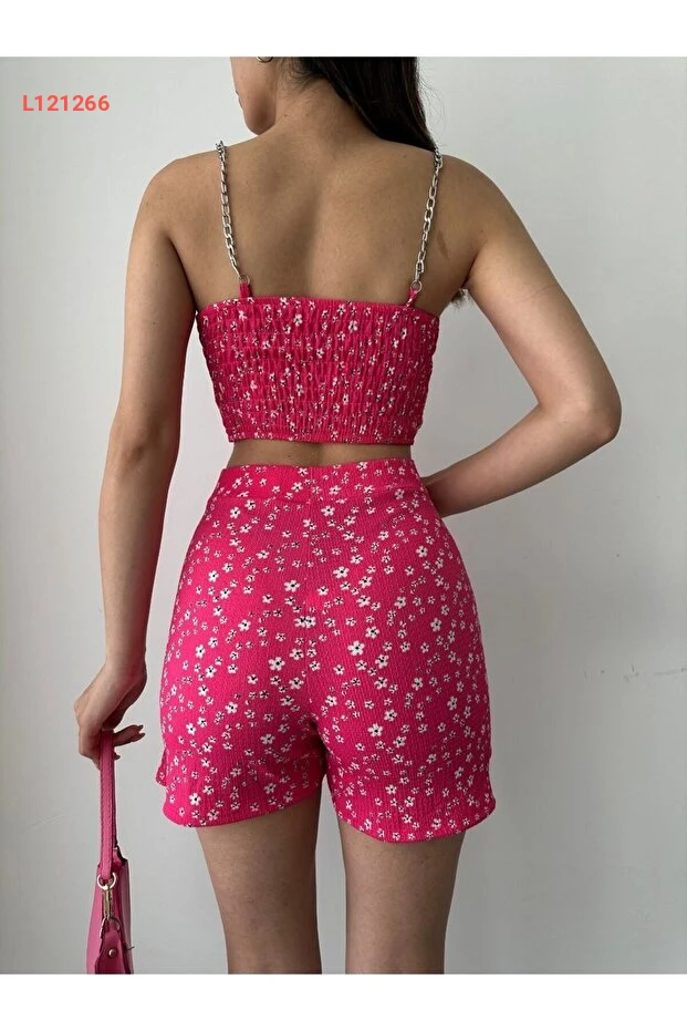 إطلالة الصيف الساحرة: طقم تنورة شورت مزخرفة بالأزهار مع بلوزة كروب أنيقة