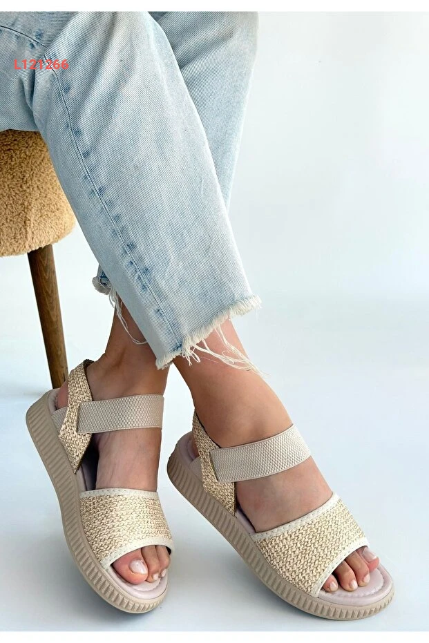 Lavish Gold Jake Bej Hasır Cilt Sandalet