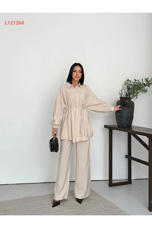 استمتع بتجربة أناقة مريحة مع مجموعة "LAVRE" الرائعة، حيث يأتي هذا الطقم المكون من قميص مزود بتفاصيل جذابة وسروال ناعم الملمس، ليمنحك مظهراً عصريًا يناسب كل المناسبات. بفضل تصميمه البسيط والمميز، يمكنك ارتداؤه في العمل أو الخروجات، مما يجعله الخيار المثالي لكل امرأة تبحث عن الأناقة والراحة في آن واحد.