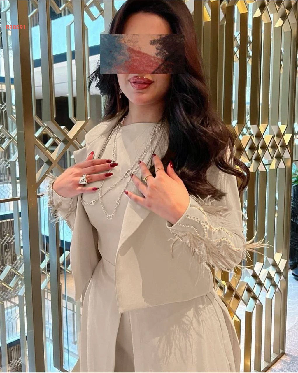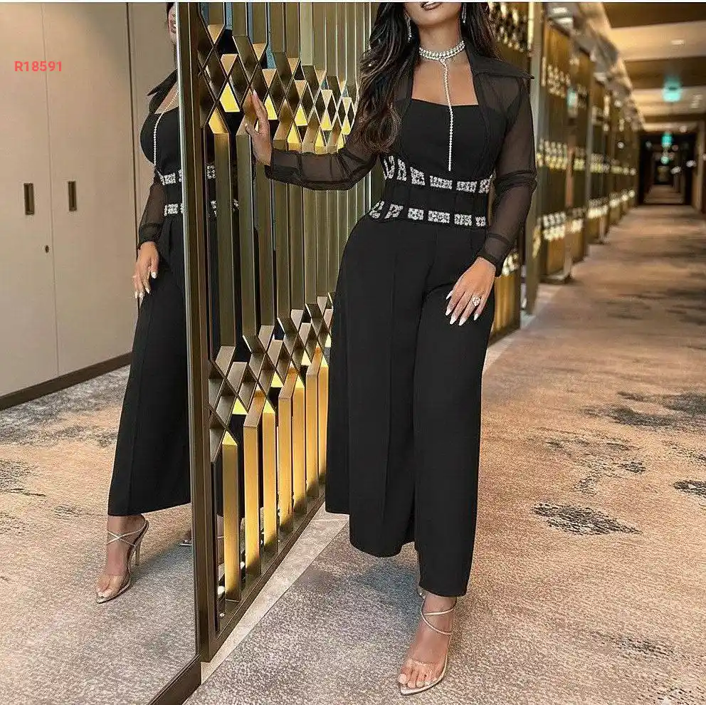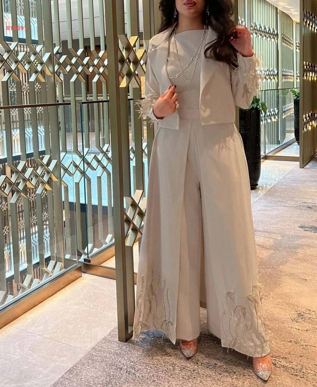 طقم أفرول طبقات مفتوحة من الامام والجانب مع جاكيت مزين بالالماس