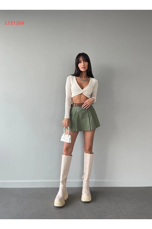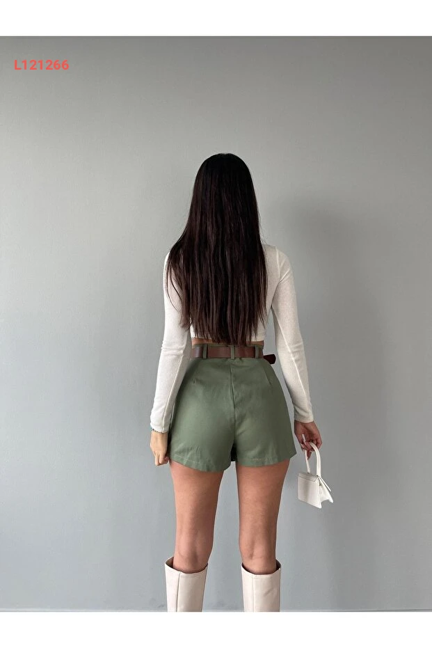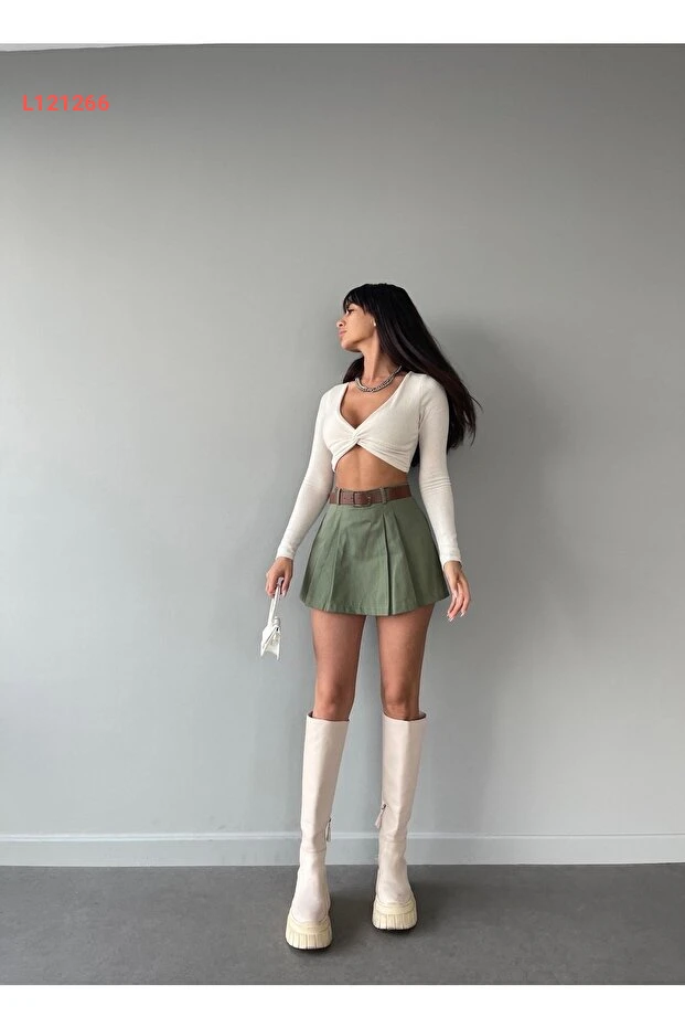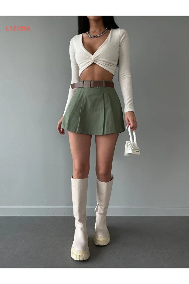 تنورة قصيرة نسائية باللون الهاكي مع حزام وقصات متدرجة من LB Laluna