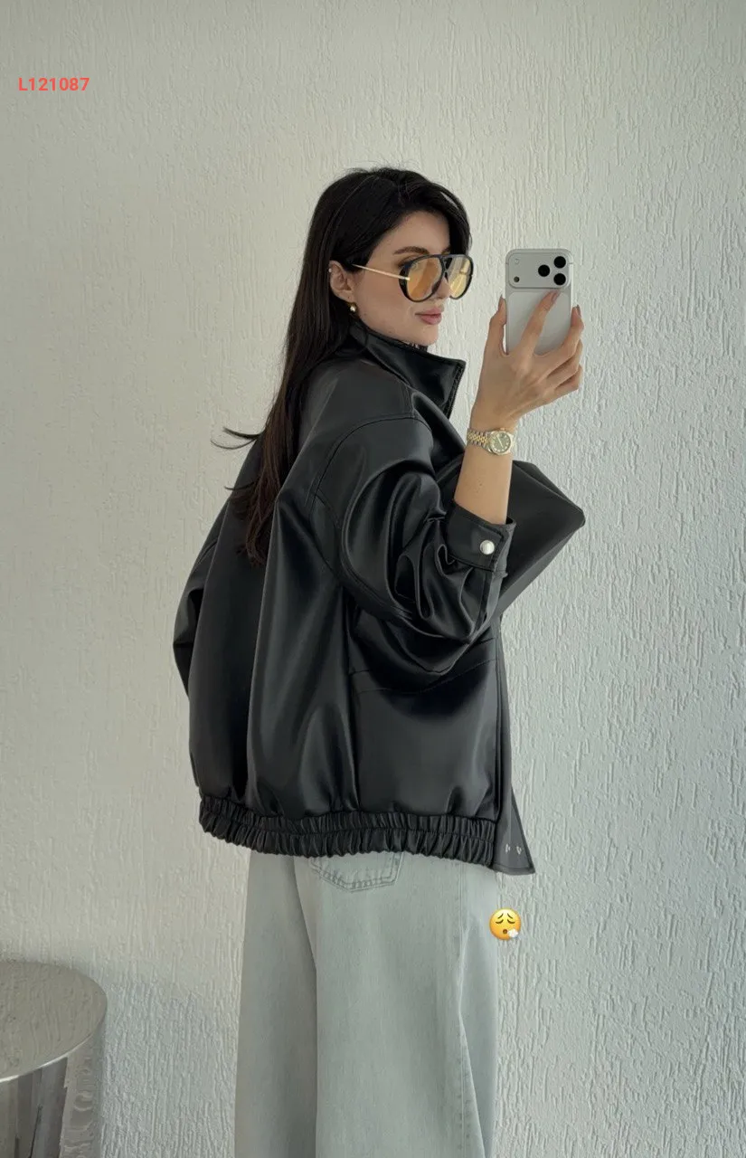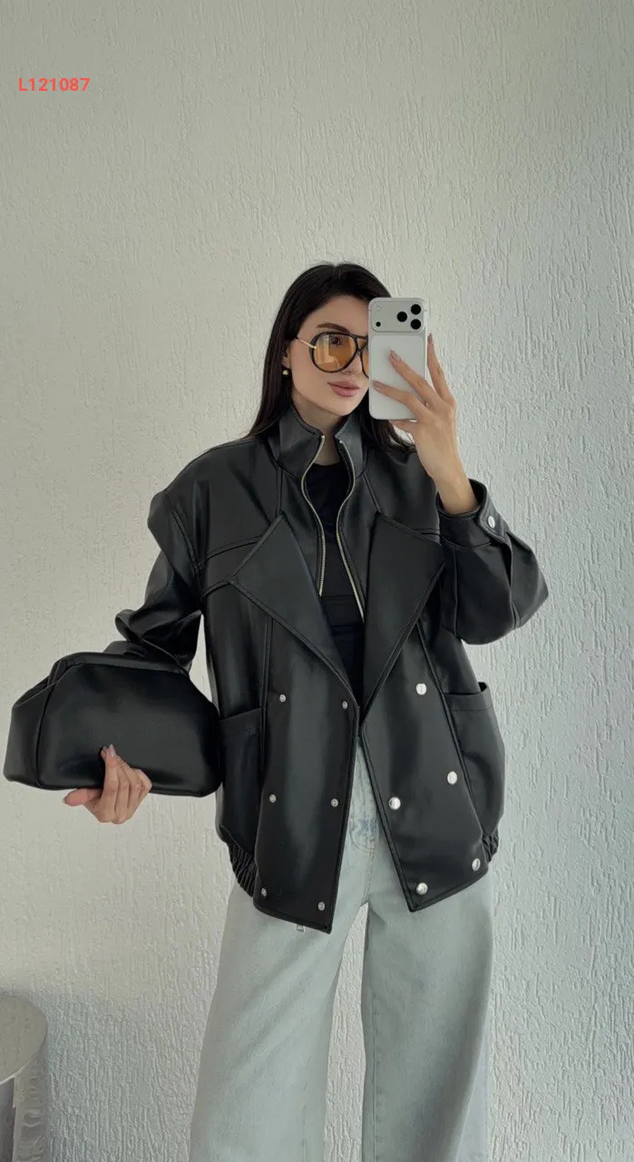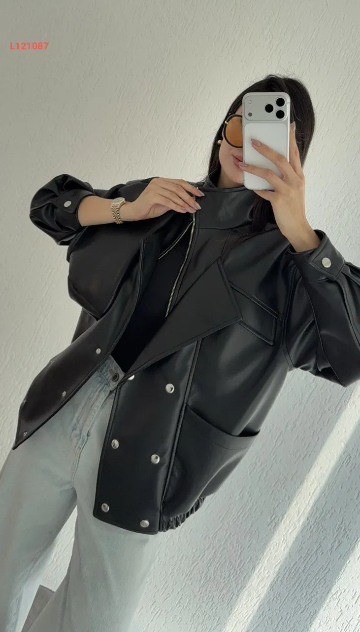 جاكيت جلد بأزرار كبس