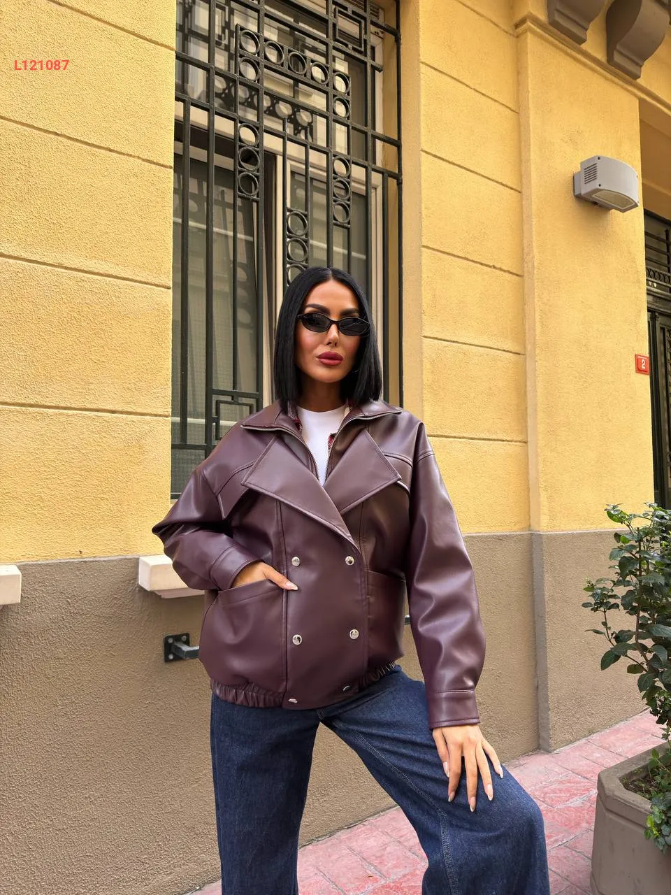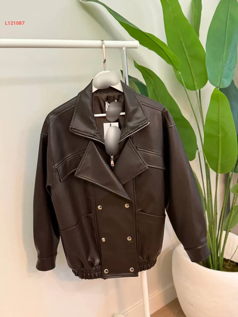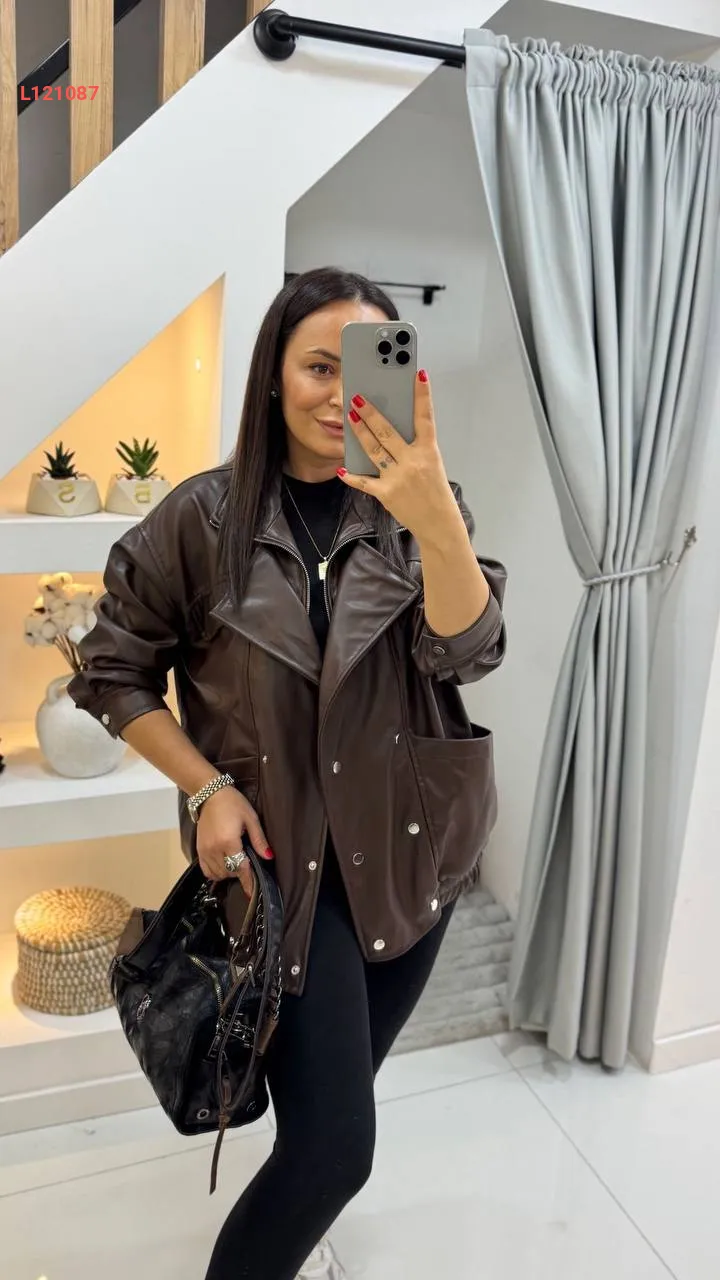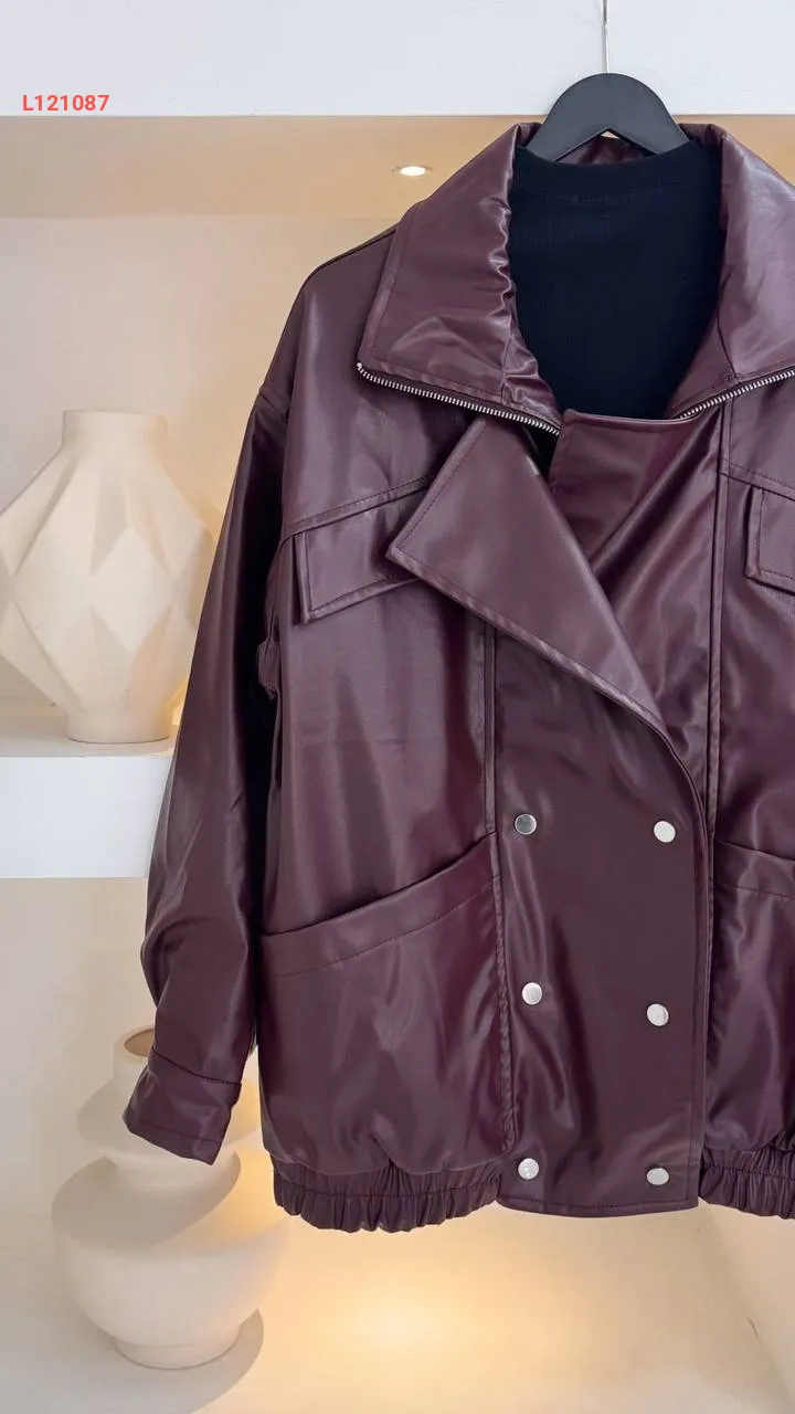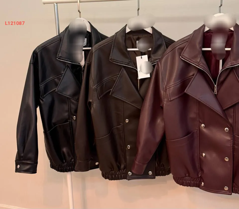 جاكيت جلد بسحاب وأزرار مزدوجة
