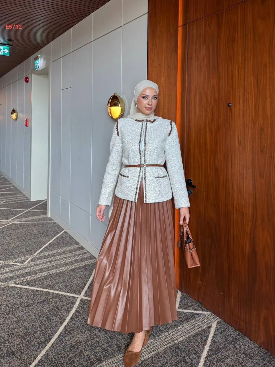 طقم تنورة جلد مع جاكيت بحزام