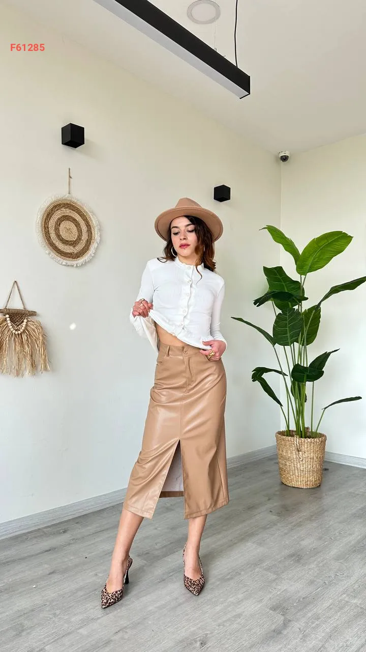 تنورة جلد بفتحة أمامية