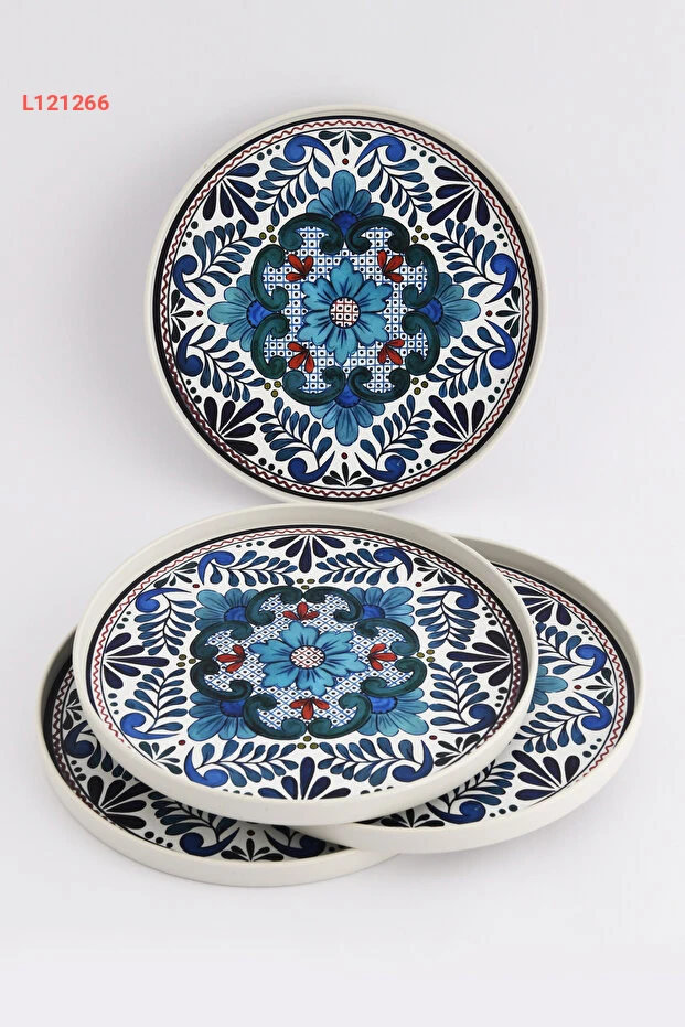 مجموعة ليلى 4 قطع صينية أزور بلوم 22 سم أزرق-أبيض