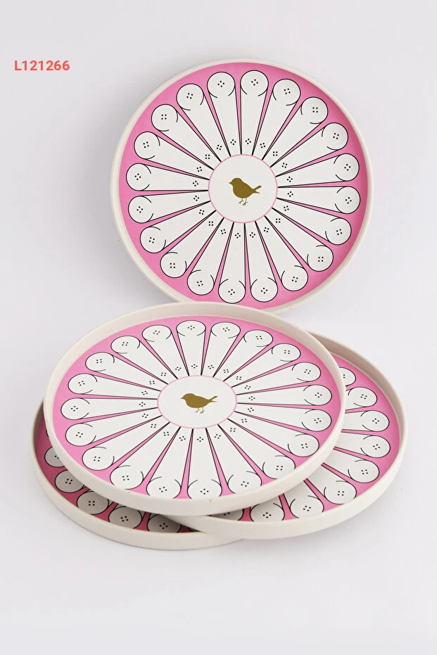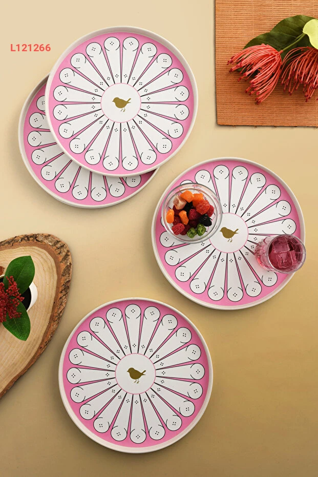 استمتع بتقديم المقبلات والحلويات بأناقة مع صينية ليلى 4'lü لعصافير الحب، تصميمها الجذاب باللونين الوردي والأبيض يضفي لمسة من الأنوثة والرقي على أي طاولة. بقطر 22 سم، توفر هذه الصينية مساحة مثالية لتنسيق الأطباق الصغيرة بكل سهولة وأناقة، مما يجعلها الخيار المثالي لكل المناسبات.