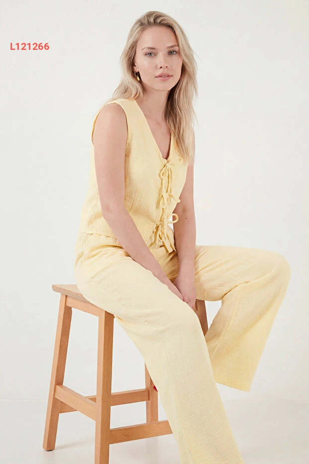 استمتع بإطلالة أنيقة ومريحة مع طقم "Lela Pamuklu" المصنوع من القطن الناعم. يتميز بتصميم عادي ومربوط يفصل بشكل مثالي بين الراحة والأناقة، مما يجعله الخيار المثالي لأي مناسبة. بفضل خامته الخفيفة، ستشعرين بالراحة طوال اليوم، مع لمسة عصرية تبرز أسلوبك الفريد.