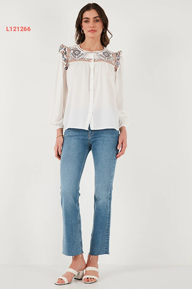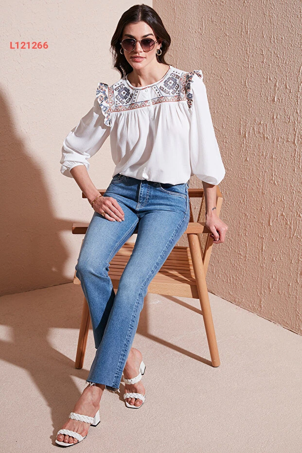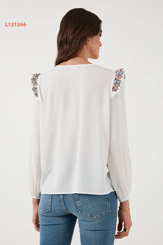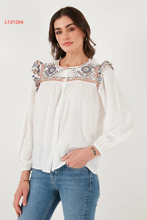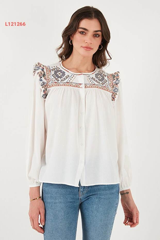قميص شيلي بنقشة إتنيك مع تفاصيل الأكمام