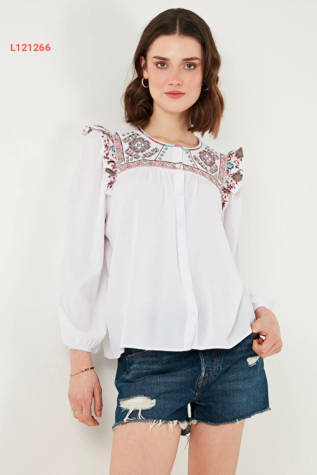 بلوزة شيلي من قماش الأيتنيك بتصميم عصري وأكمام مميزة