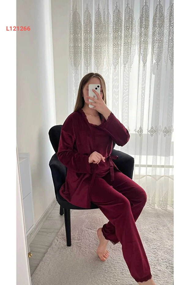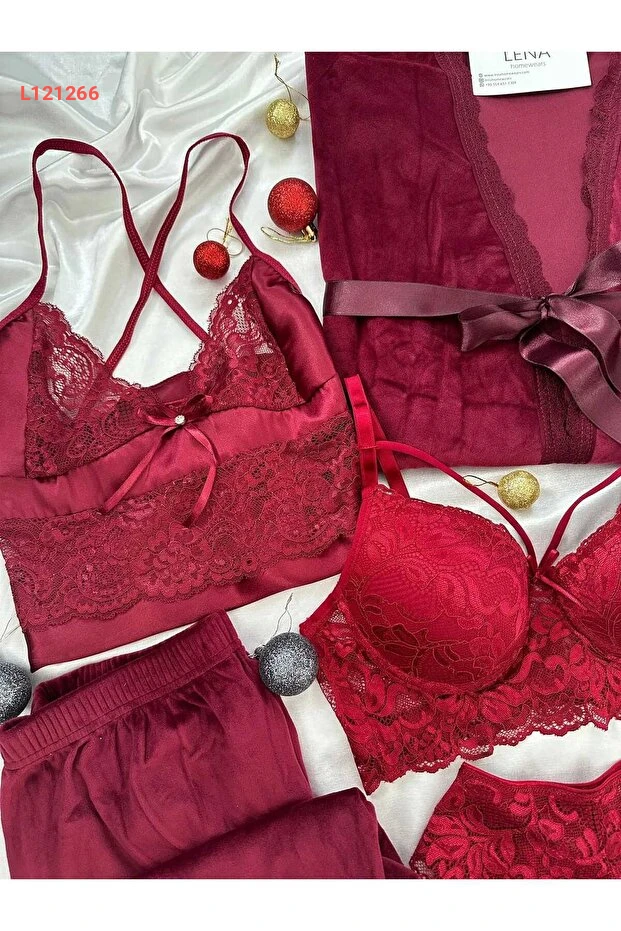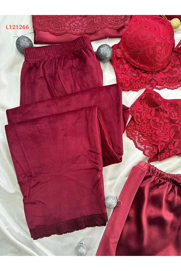 8 قطع مكونة من بيجامة من المخمل والساتان، مع أثواب رائعة