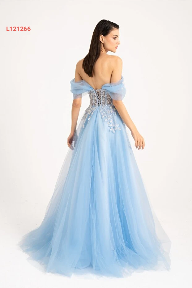 استمتعي بإطلالة فاخرة مع فستان Lenta Moda بريقه الأزرق الفاتح وتصميمه المزين بتفاصيل أنيقة من أوراق لطيفة. يجمع هذا الفستان بين الأناقة العصرية والراحة، ليكون الخيار المثالي لأي مناسبة خاصة. سواء كان حفلاً أو احتفال خطوبة، سيجعلكِ تتألقين بجمال لا يُنسى.