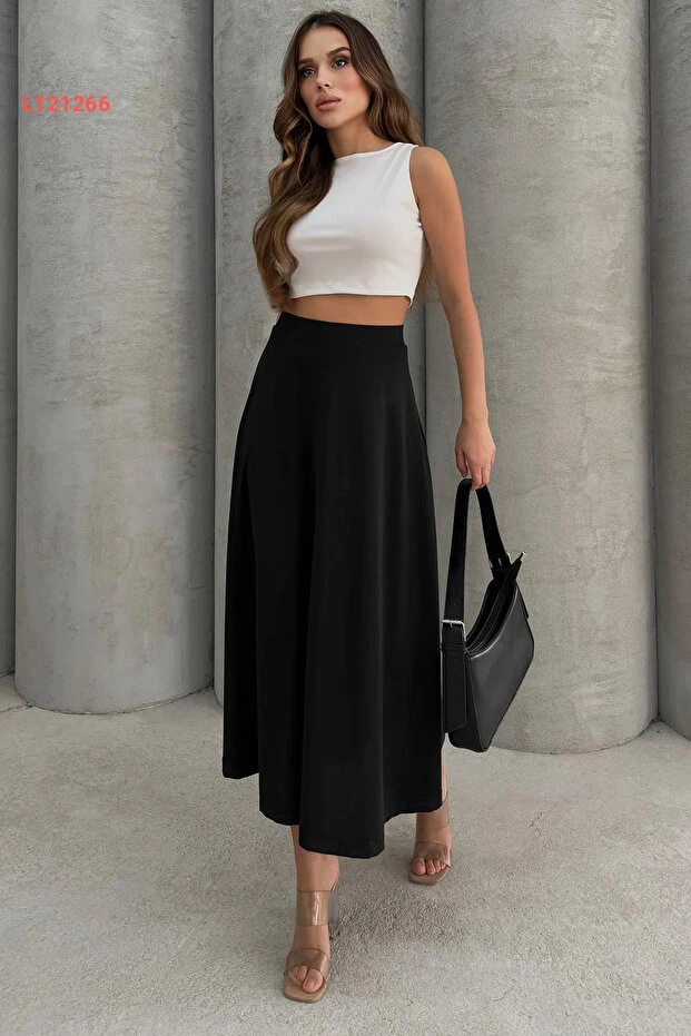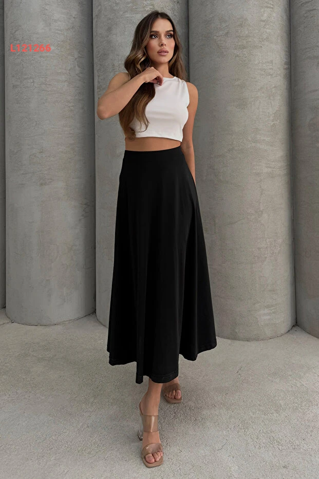 تنورة لسا وير الطويلة بقصة كلوش من قماش سكوبا مع حافة مطاطية