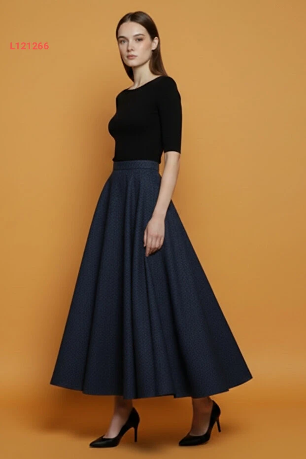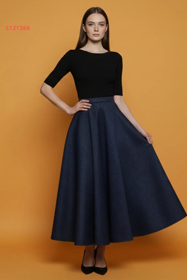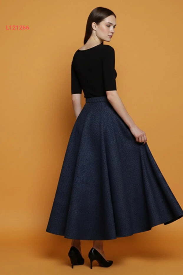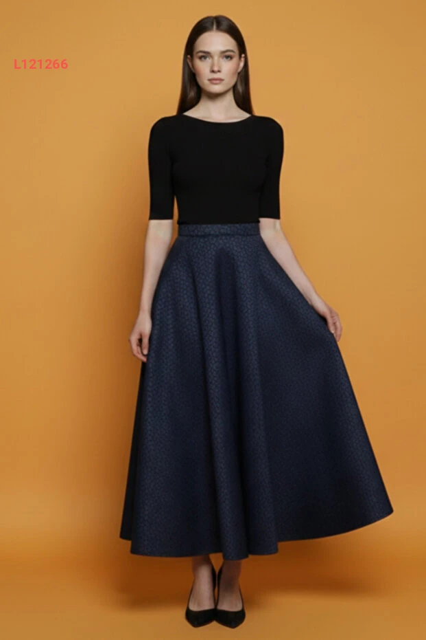 استمتع بإطلالة مميزة مع تنورة "Lesa Wear" الشتوية المزخرفة. تتميز بتصميمها الكلوشي المريح وبحزام مرن يضمن لك الراحة والطلة الأنيقة في كل المناسبات، بينما يضفي اللون الأزرق الداكن لمسة من الأناقة على خزانة ملابسك. اجعلي كل يوم مميزًا مع هذه التنورة التي تجمع بين الراحة والجمال!