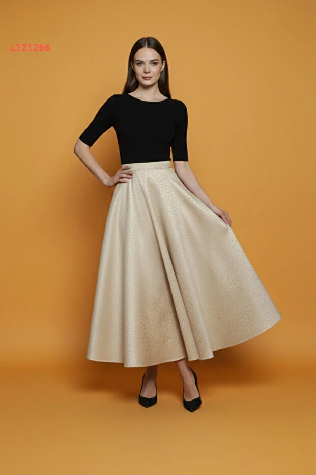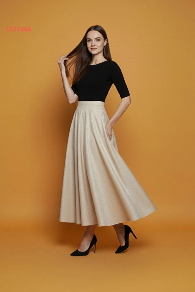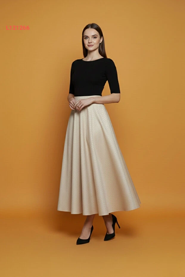 اكتشفي أناقة ملفتة مع تنورة "Lesa Wear" المصممة بنمط شتوي جذاب، التي تجمع بين الراحة والأناقة بفضل خامة السكوبي الناعمة. تصميمها الكلوشي والخصر المرن يوفران لك حرية الحركة، بينما يمنحك اللون البيج الجذاب تنوعًا مثاليًا لتنسيقاتك المختلفة في الموسم البارد.