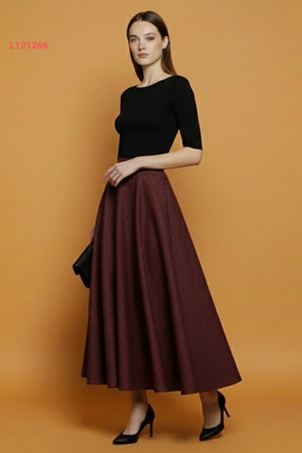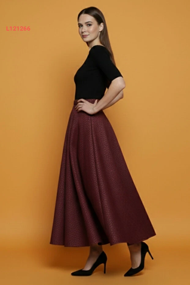 تألق في فصل الشتاء مع تنورة "Lesa Wear" الكلوش الطويلة باللون القرمزي، المصممة من قماش سكوربا المريح والمثالي لأي مناسبة. تتميز بنمطها الجذاب وخصرها المطاطي الذي يوفر لكِ الراحة الكاملة، لتمنحكِ مظهراً أنيقاً وعصرياً في كل لحظة. اجعلي من هذه التنورة خيارك المفضل لمواكبة أحدث صيحات الموضة!