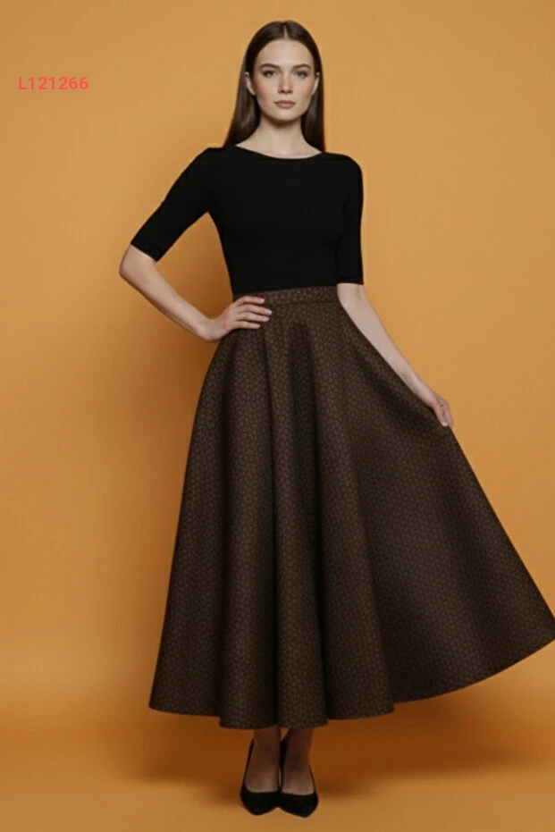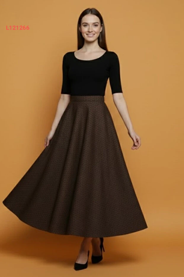 استمتع بأناقة الشتاء مع تنورة "Lesa Wear" المصممة بنمط جذاب ولون بني دافئ. تأتي هذه التنورة الطويلة بتصميم كلوش مع حافة مرنة، مما يوفر راحة كبيرة وأناقة في كل مناسبة. اجعلي إطلالتك مميزة وجذابة مع لمسة عصرية تناسب ذوقك الرفيع!