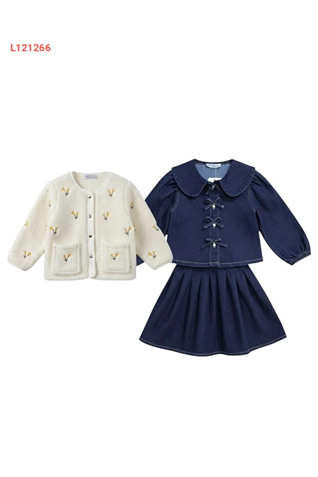 طقم فتيات ثلاثي القطع مع تطريز وقطعة من ويلسوفت من LİAR.GİYİM