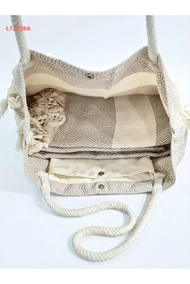 حقيبة شاطئية فاخرة من قطن عضوي مع باريه متناسق - جيب داخلي واغلاق زر