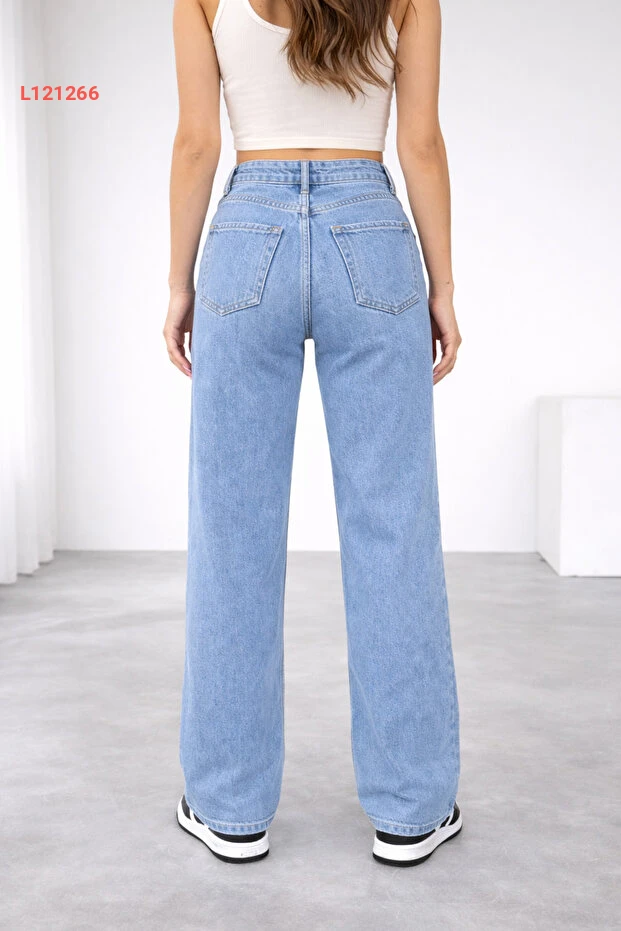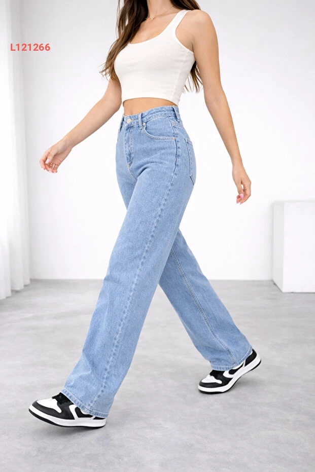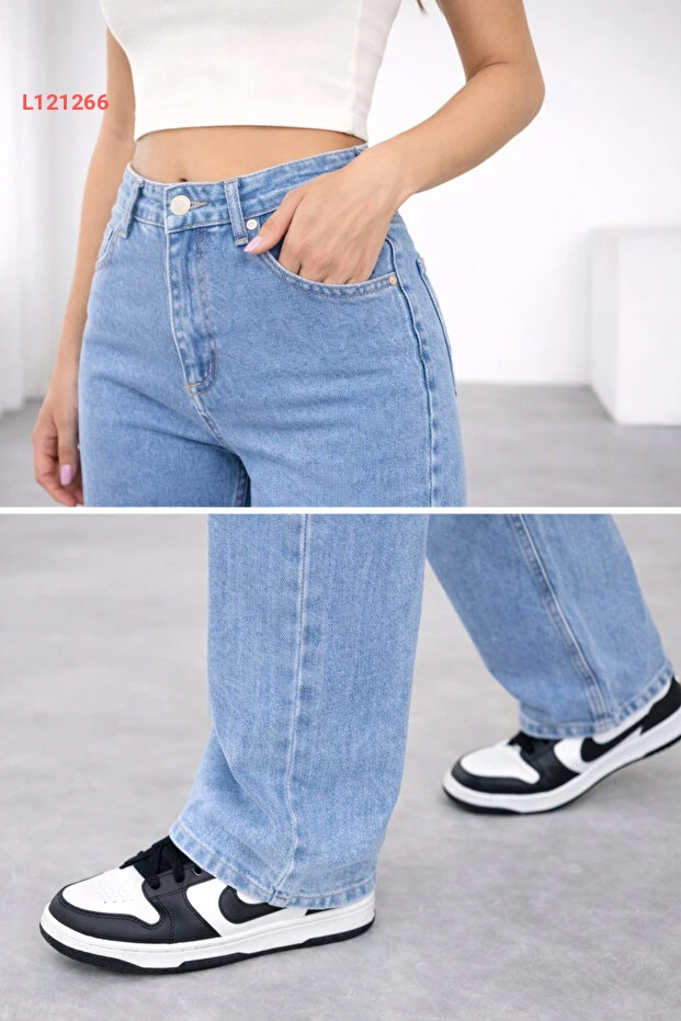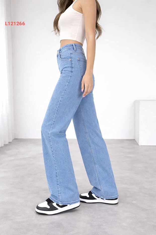 استمتع بإطلالة عصرية ومريحة مع بنطال الجينز النسائي واسع الساق بخصر مرتفع. يأتي بلون الأزرق الجاذب مع تصميم مريح يبرز أنوثتك، ويتميز بمزيج من القطن والإيلاستين ليضمن لك حرية الحركة طوال اليوم. عيشي اللحظة بأناقة مع هذه القطعة الأساسية في خزانتك!