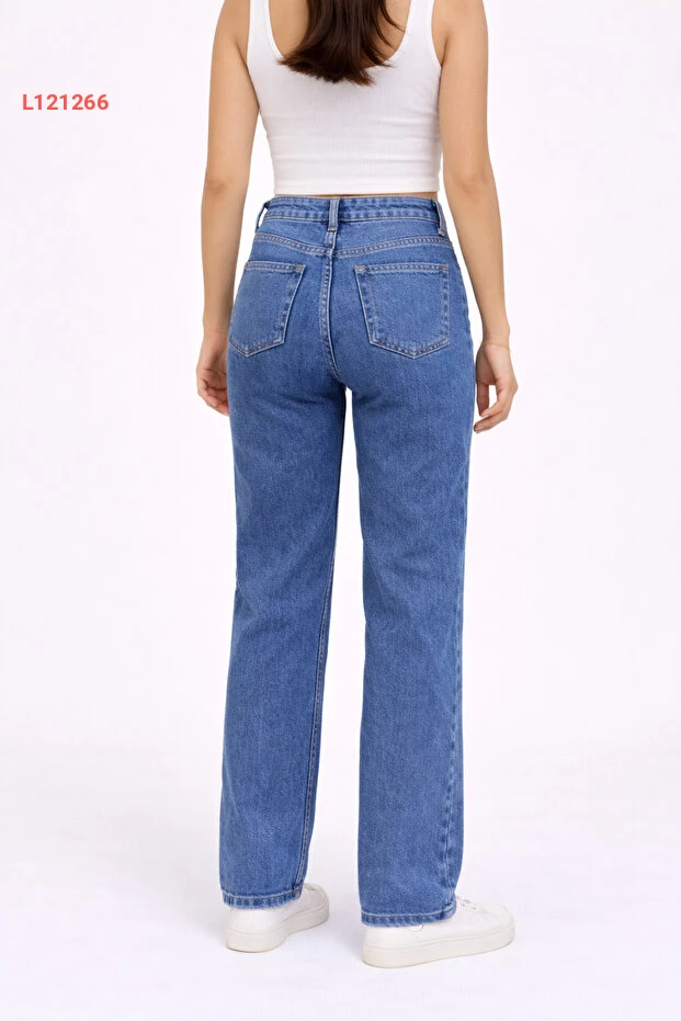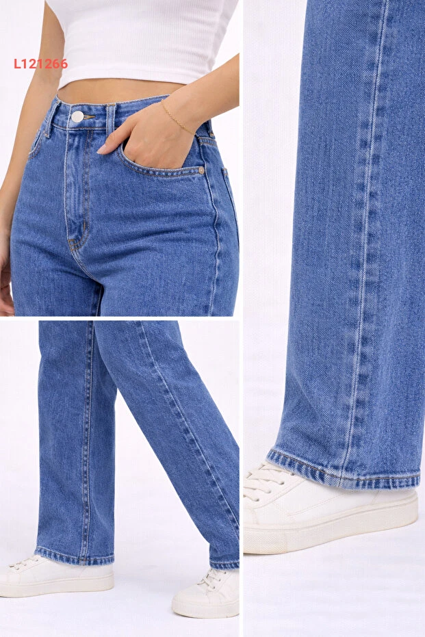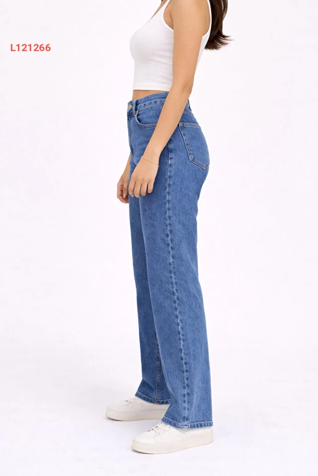 اختاري إطلالة عصرية ومريحة مع بنطلون الجينز النسائي بلون الأزرق المتوسط، والذي يأتي بتصميم عالي الخصر وقصة مستقيمة مع ساق واسعة. مصنوع من قماش ديميم مرن، يضمن لكِ راحة مثالية خلال اليوم مع لمسة من الأناقة، مما يجعله الخيار المثالي لجميع مناسباتك!