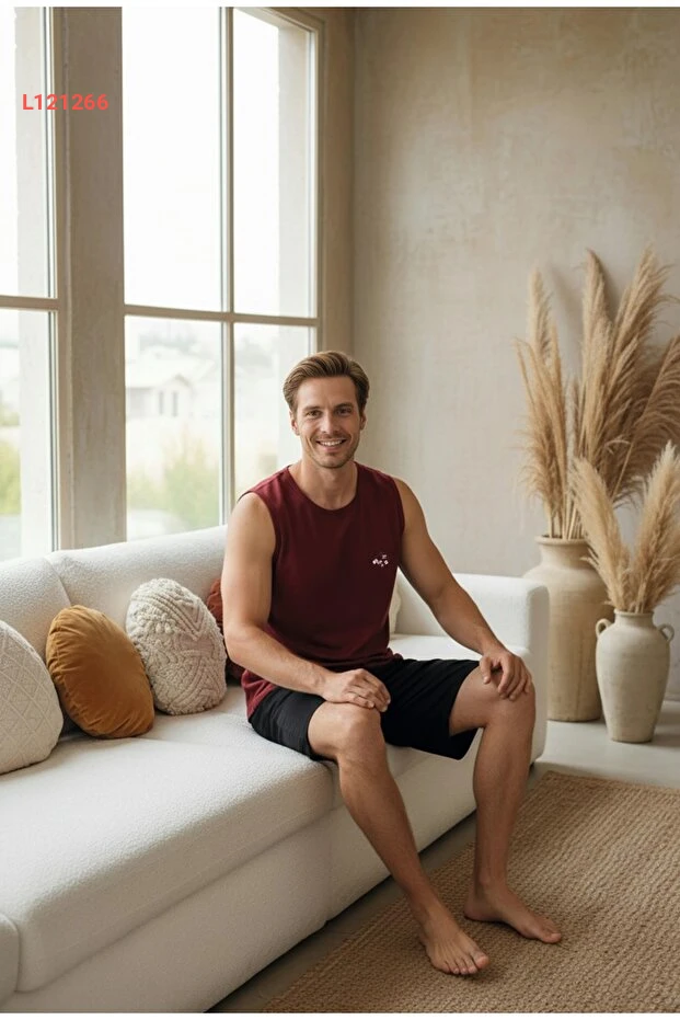 استمتع بأقصى درجات الراحة والأناقة مع طقم بيجاما الرجال من LİLA İÇ GİYİM، الذي يتميز بتصميمه الفريد الصحيح مع تطريز أنيق. يأتي بلونٍ جذاب وأكمامٍ بدون أكمام مع شورت مريح، مما يجعله الخيار المثالي للاستمتاع بأمسيات هادئة أو وقت الاسترخاء في المنزل.