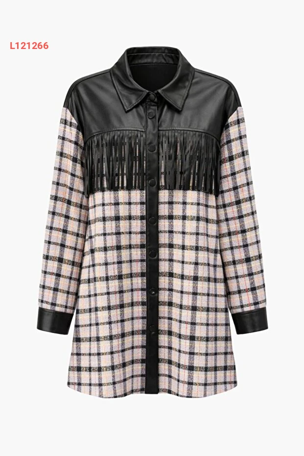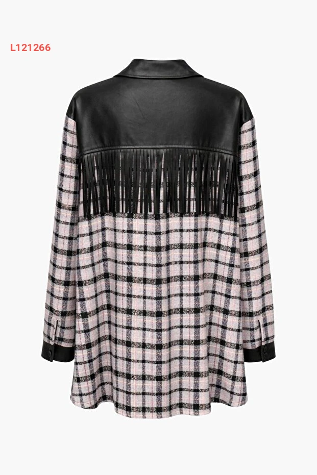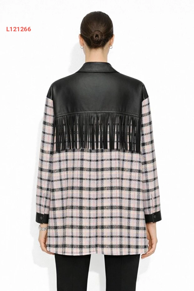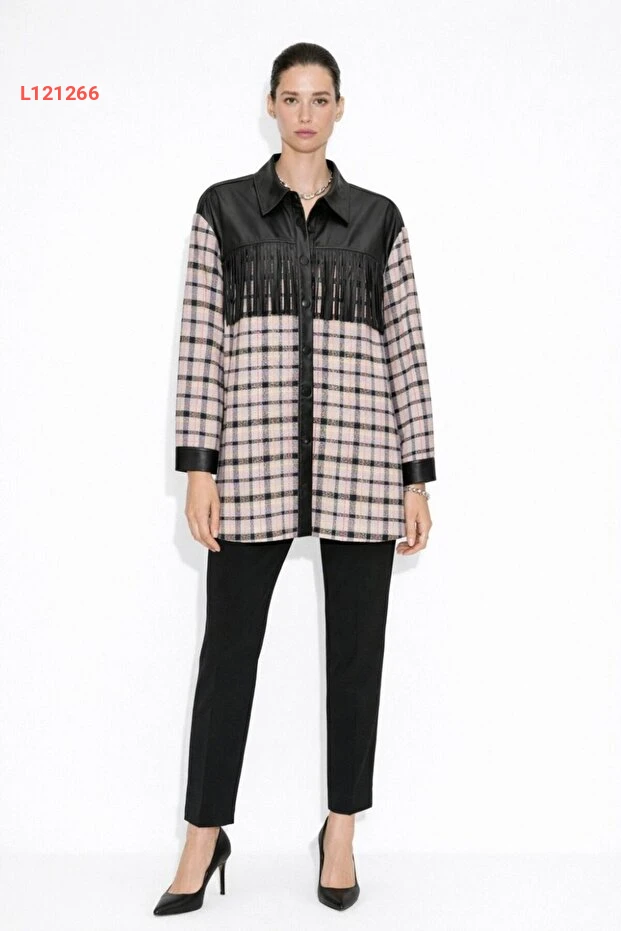 تونيك جومه بتفاصيل دنتلة فيوليت مع لمسة من التصميم الكاروهات