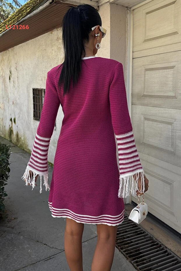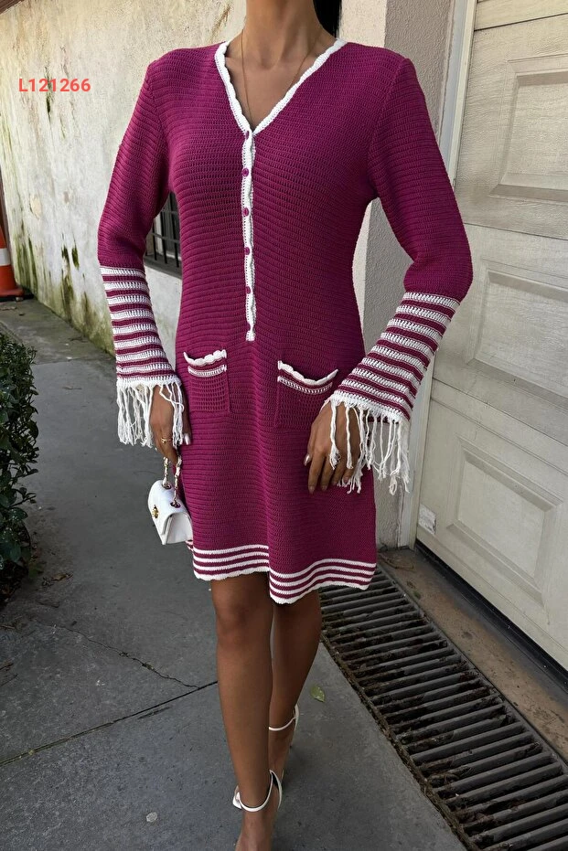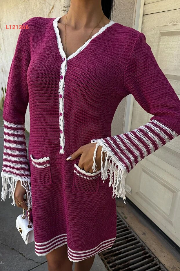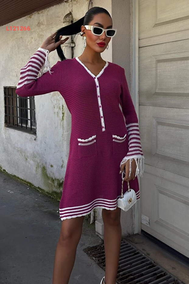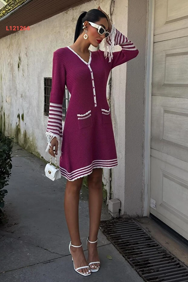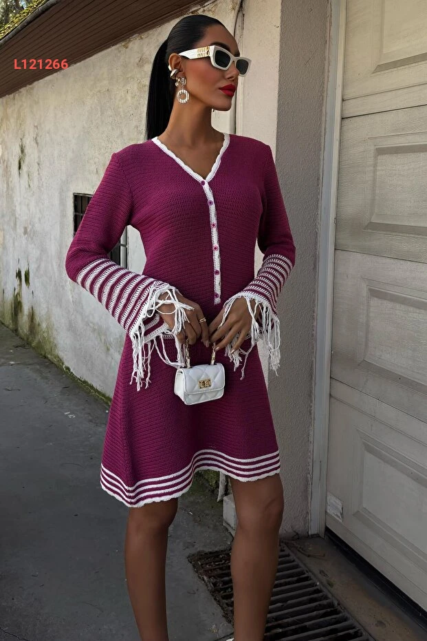 استمتعي بأناقة لا مثيل لها مع فستان Lijuri بمزيج رائع من اللون الموردي الجميل والأكمام الصوفية المميزة مع تفاصيل الدبابيس الرائعة. التصميم الفريد يجمع بين الراحة والأسلوب العصري، مما يجعله الخيار المثالي لكل المناسبات. استعدي لإبراز أنوثتك وجاذبيتك مع كل خطوة ترتدينها.