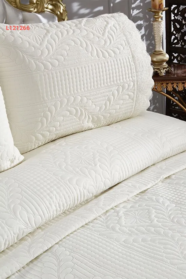 استمتع بلمسة من الفخامة مع غطاء السرير المزدوج "Çeyiz Diyarı Limena" بتصميمه الدانتيل الجذاب والتفاصيل المحببة. مصنوع بتقنية "الكاپيتوني" العصرية، يضمن لك هذا الغطاء شعوراً بالراحة والأناقة في كل لحظة. أضف لمسة دافئة إلى غرفة نومك مع اللون الكريمي الذي يتناغم مع أي ديكور.