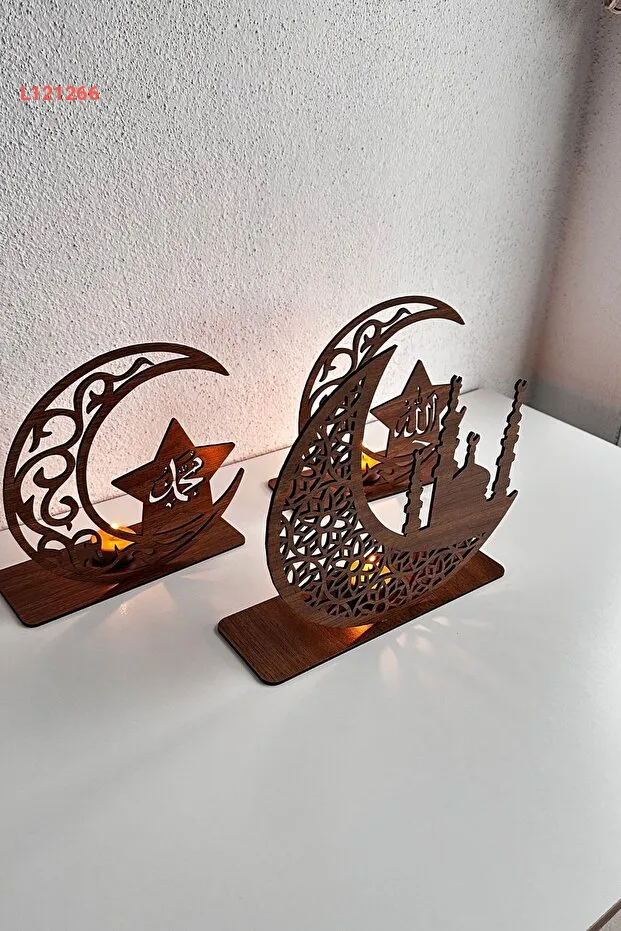 مُدخَنَة شمع تزيينية ثلاثية من خشب الجوز - خاصة لشهر رمضان