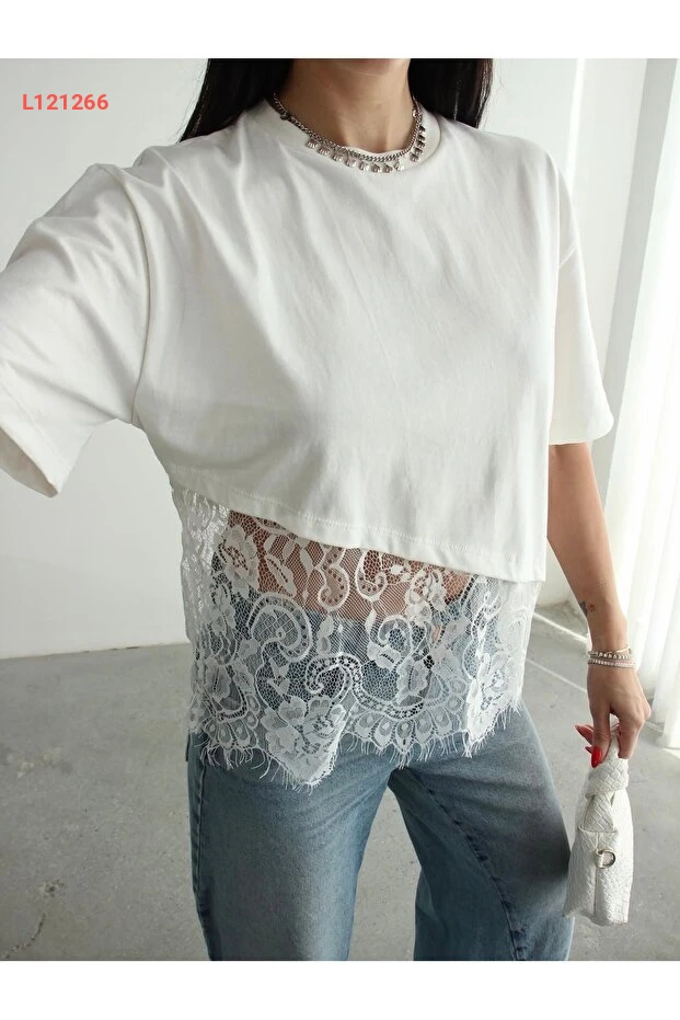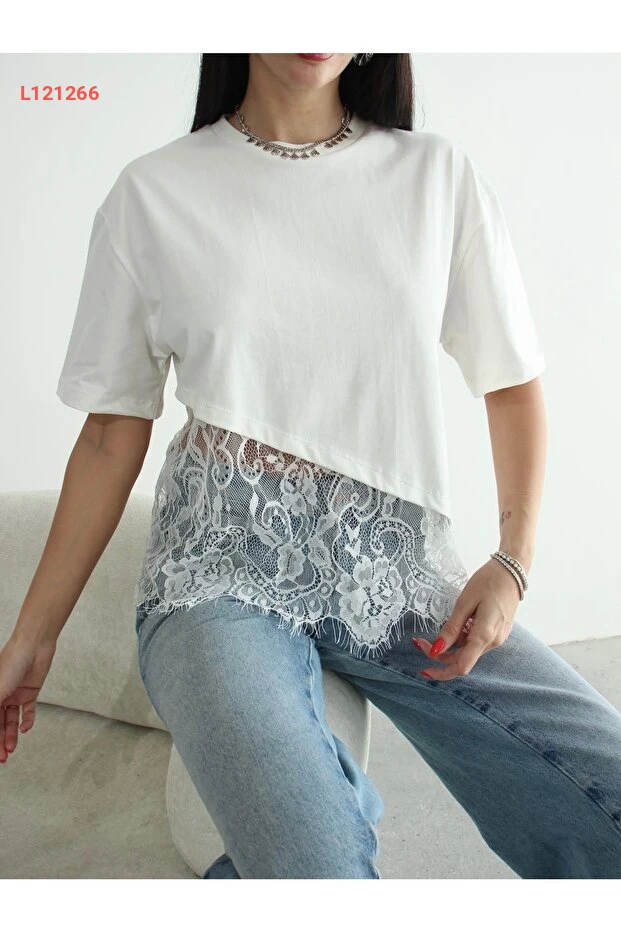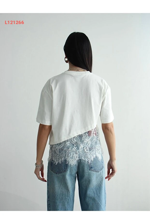 استمتعي بأناقتك كل يوم مع تيشيرت LİNDALİNA النسائي، المصنوع من القطن الناعم والذي يوفر لك راحة استثنائية. تصميمه العصري ذو ياقة الدراجات وتفاصيل الدانتيل الجذابة تجعله مثاليًا للارتداء في المناسبات المختلفة، بينما الشكل غير المتناظر يضيف لمسة عصرية إلى إطلالتك.