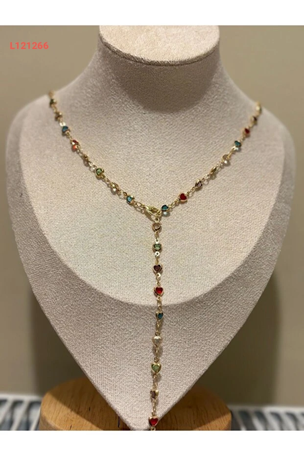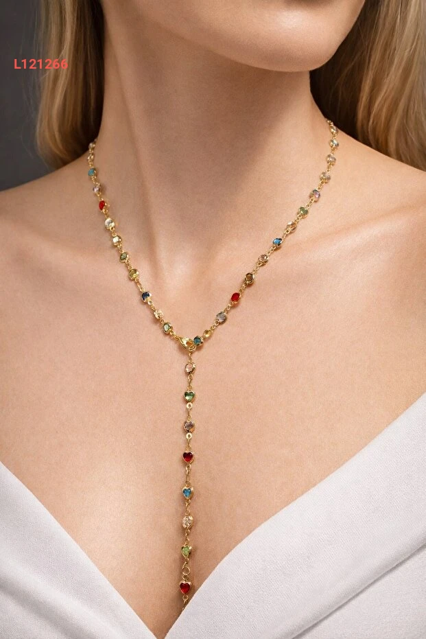 قلادة بتصميم Y على شكل قلوب ملونة - مجموعة جديدة من ليندا أوزبي جوهرة