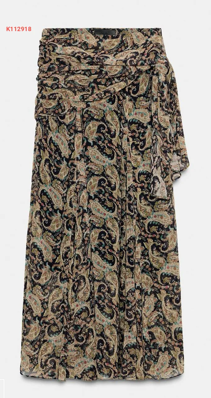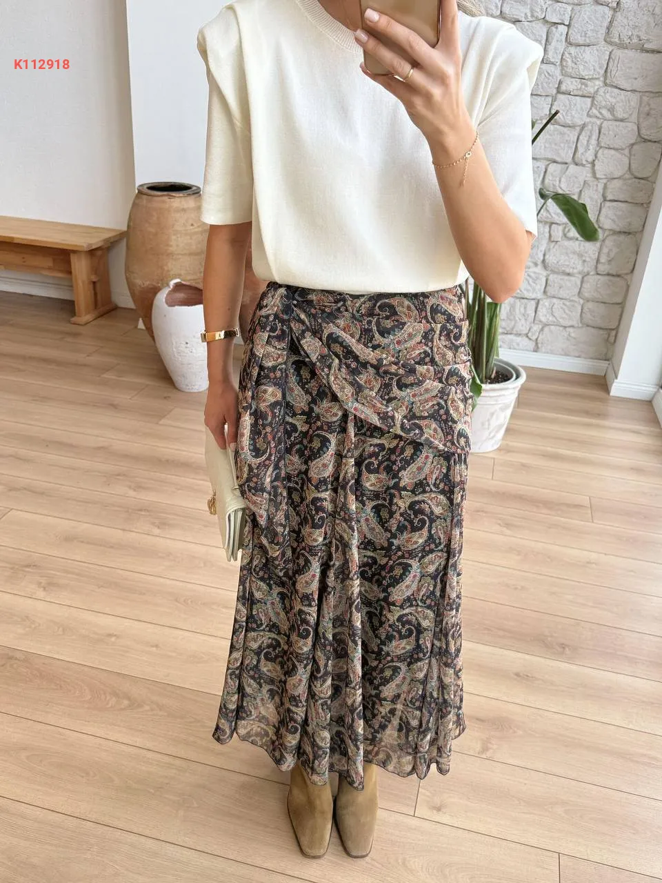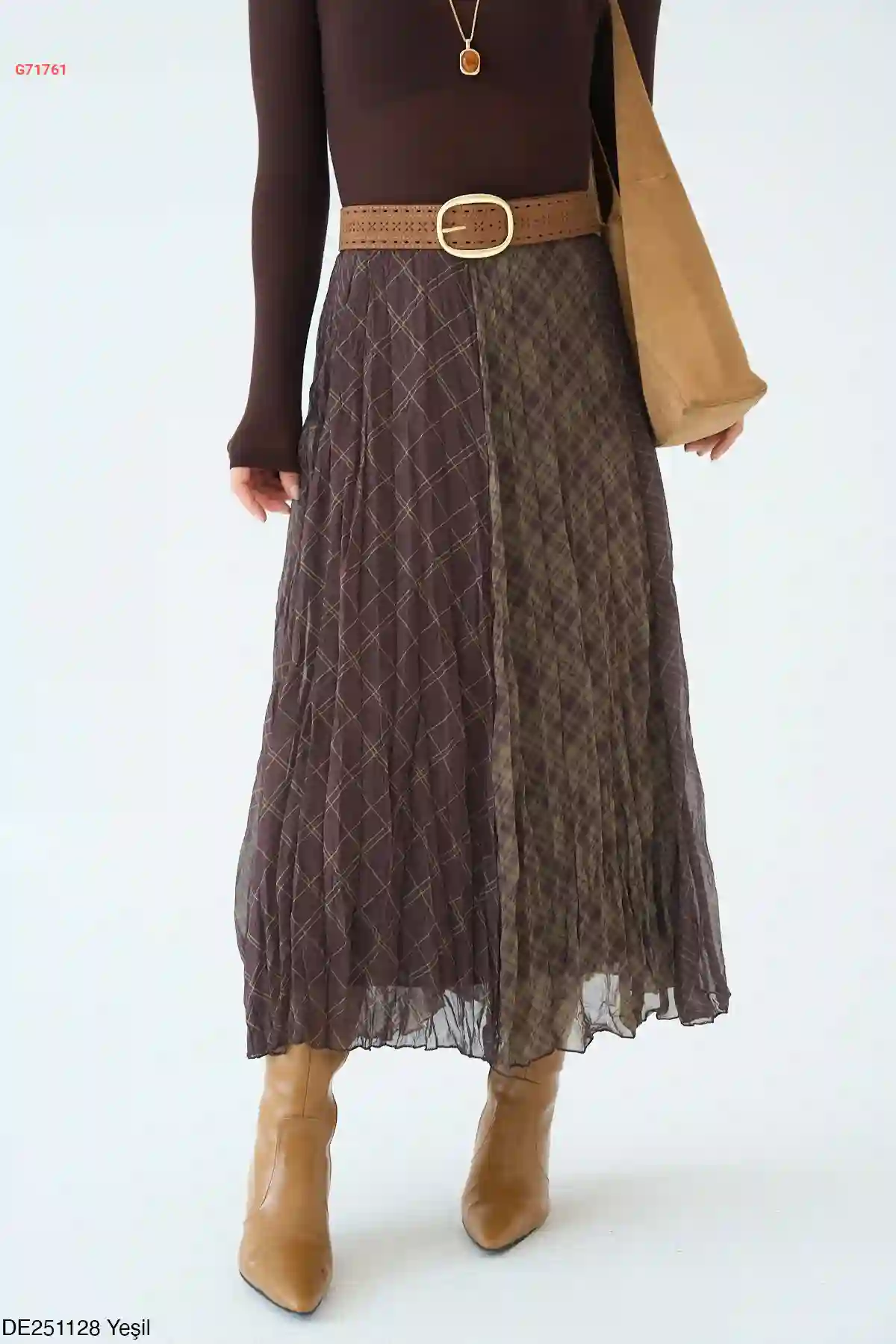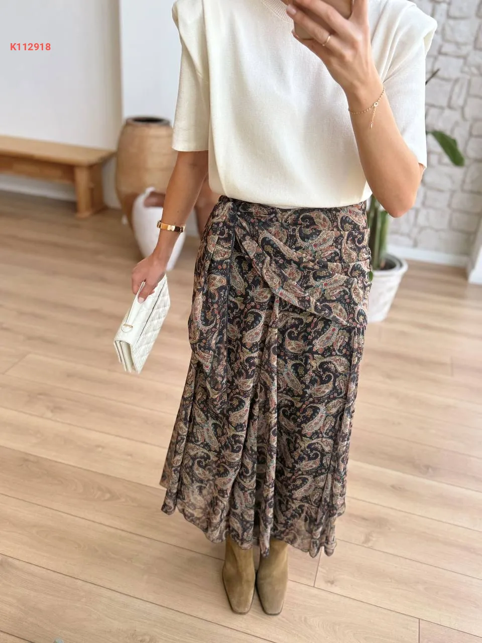 تنورة شيفون مبطنة بتفاصيل منقوشة
