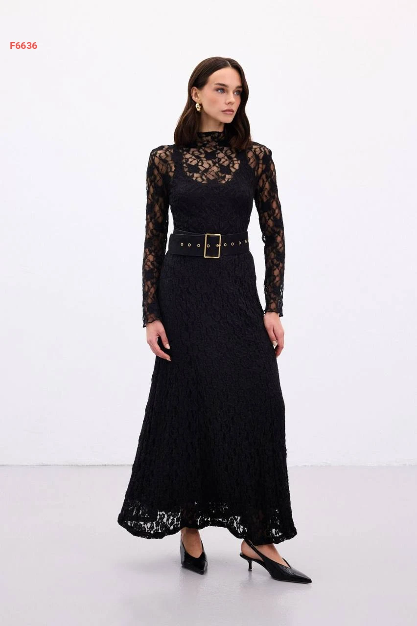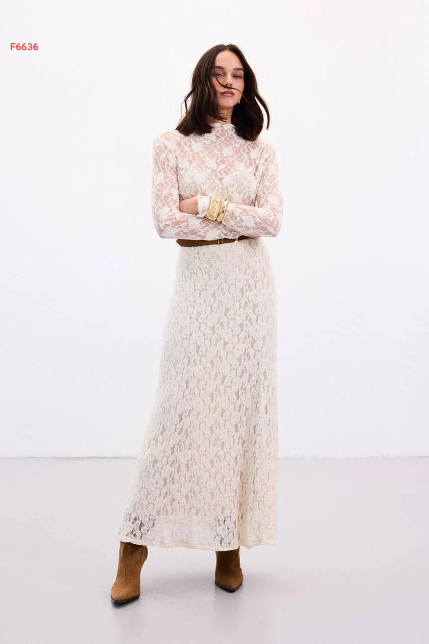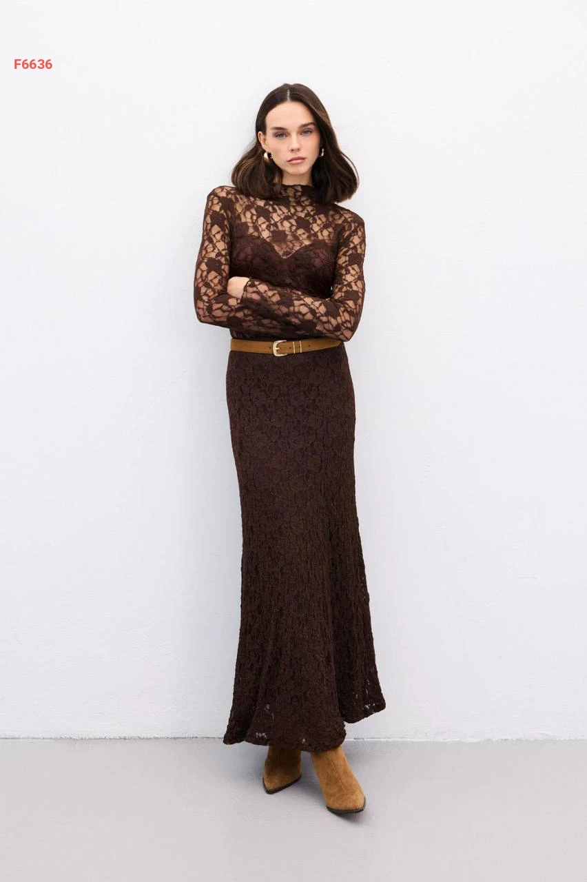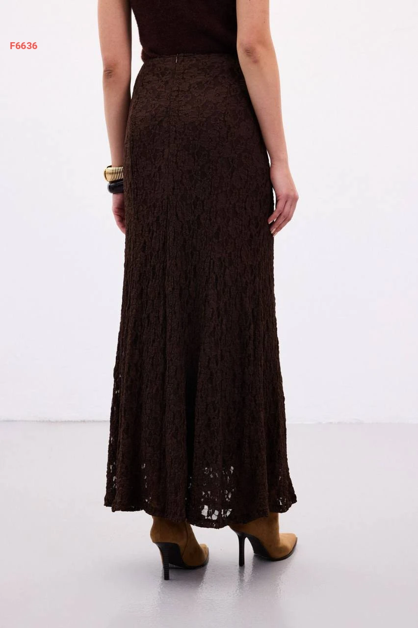 تنورة طويلة دانتيل مبطنة