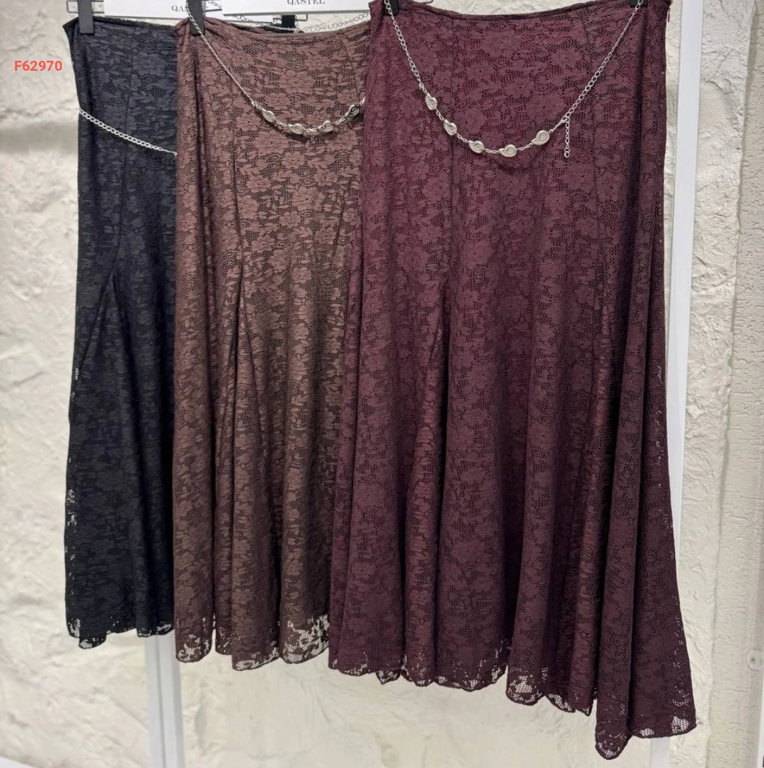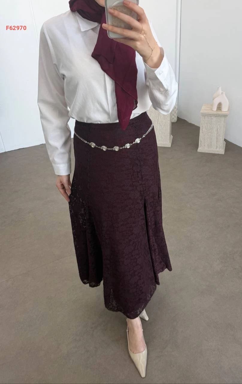 تنورة طويلة دانتيل مبطن مع سلسلة خصر