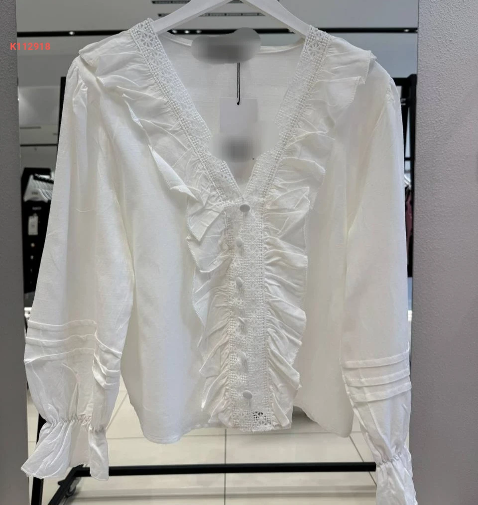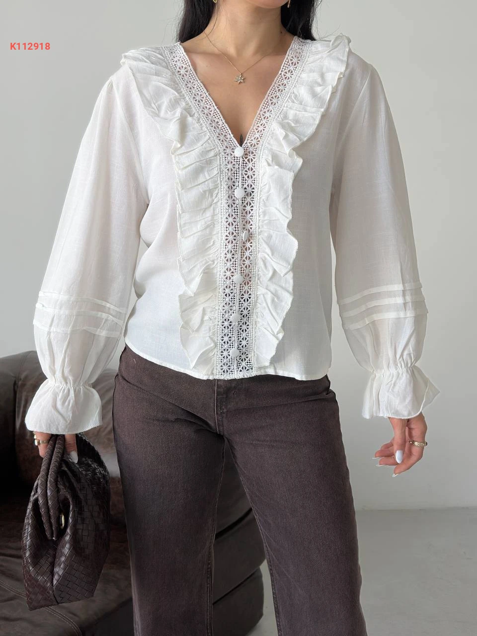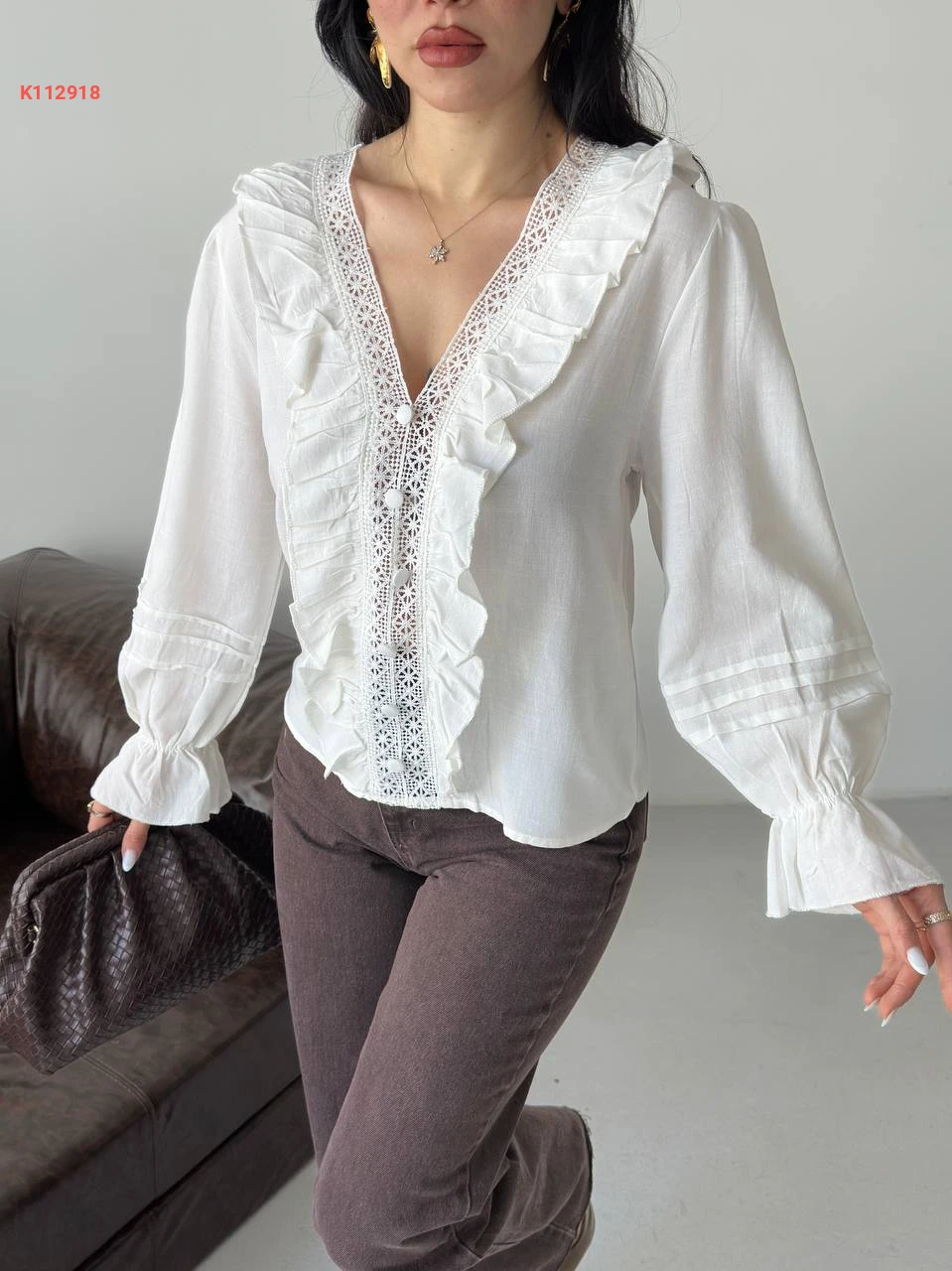 بلوزة كتان بأزرار وتفاصيل مفرغة