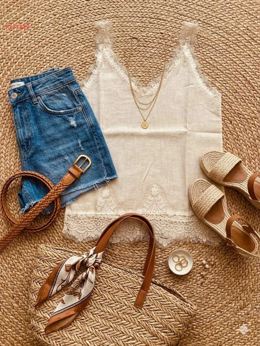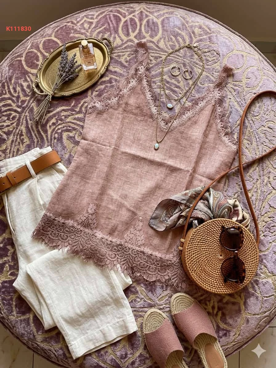 بلوزة كتان مع دانتيل شيك